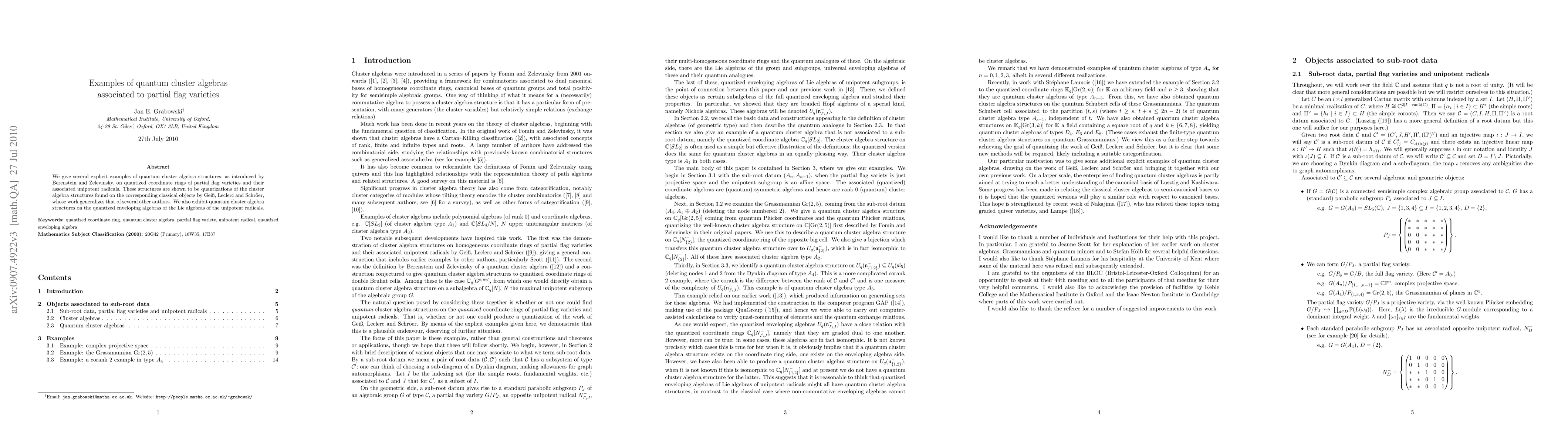 Summary: This paper provides explicit examples of quantum cluster algebras on quantized coordinate rings of partial flag varieties and their unipotent radicals, showing these structures as quantizations of classical cluster algebras. It also introduces quantum cluster algebra structures on the quantized enveloping algebras of the unipotent radicals' Lie algebras.