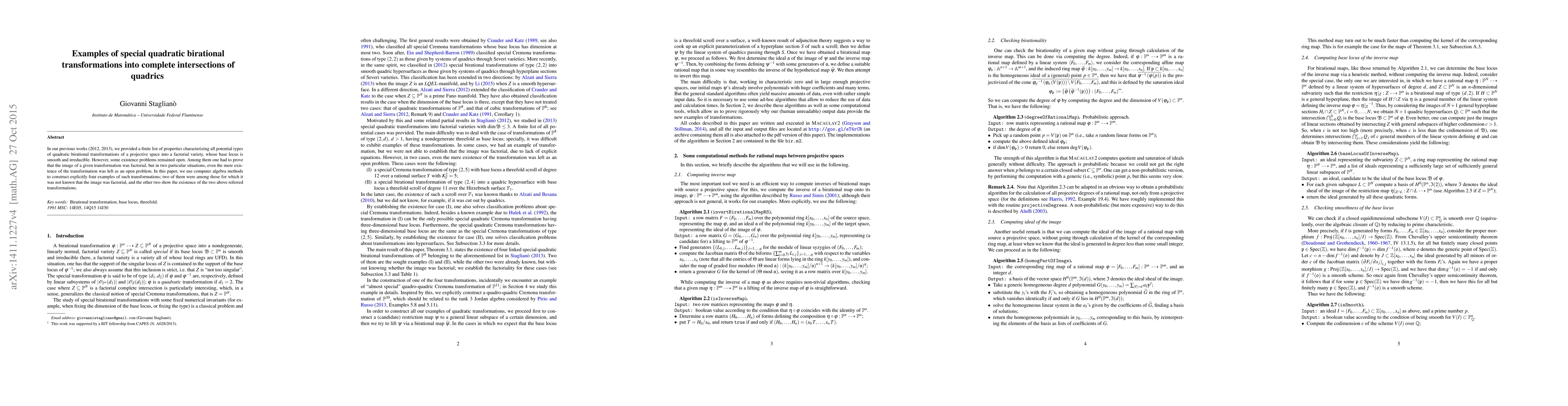 Researchers used computer algebra methods to create explicit examples of quadratic birational transformations into complete intersections of quadrics, resolving open existence problems in the field of algebraic geometry.