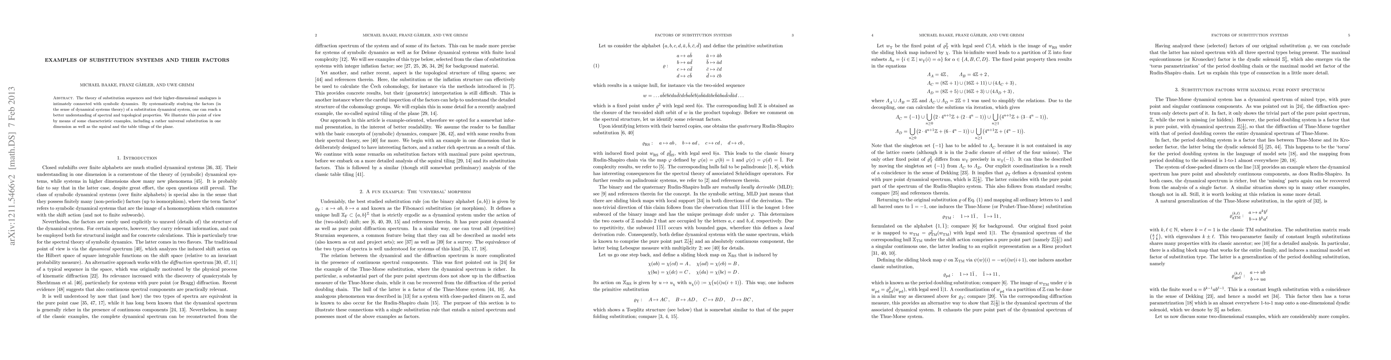 The paper presents detailed analysis of factors in substitution dynamical systems, linking dynamical and diffusion spectra to structural properties, and introduces sliding block maps for identifying factor tilings.