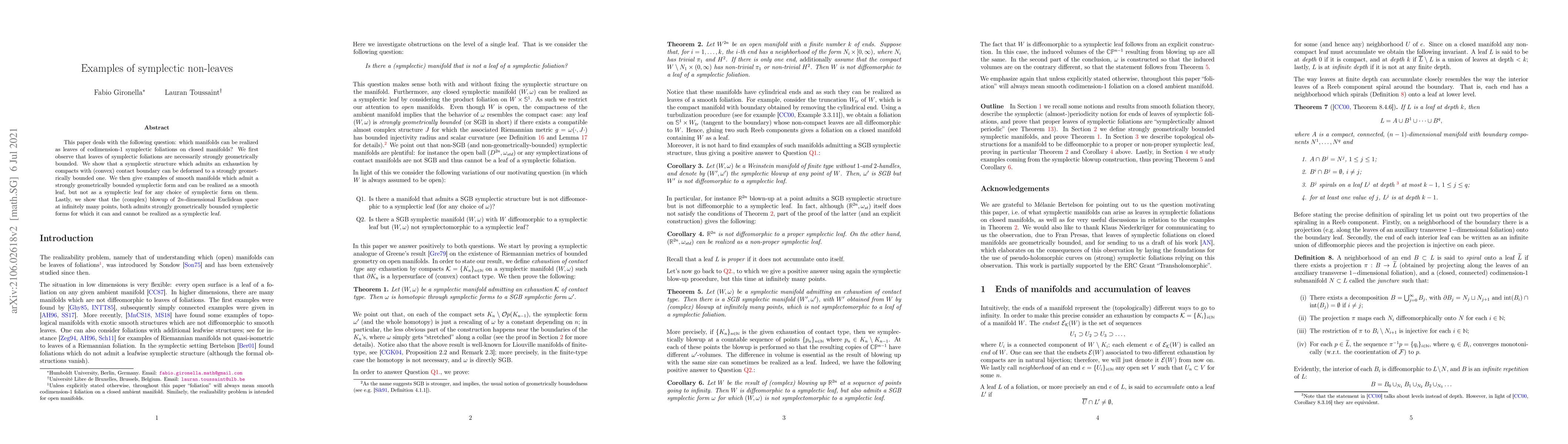 This paper explores which manifolds can serve as leaves of codimension-1 symplectic foliations on closed manifolds, demonstrating that certain smooth manifolds can be realized as leaves but not as symplectic leaves for any symplectic form. It also examines the blowup of Euclidean space at infinitely many points, showing varied possibilities for symplectic realization.