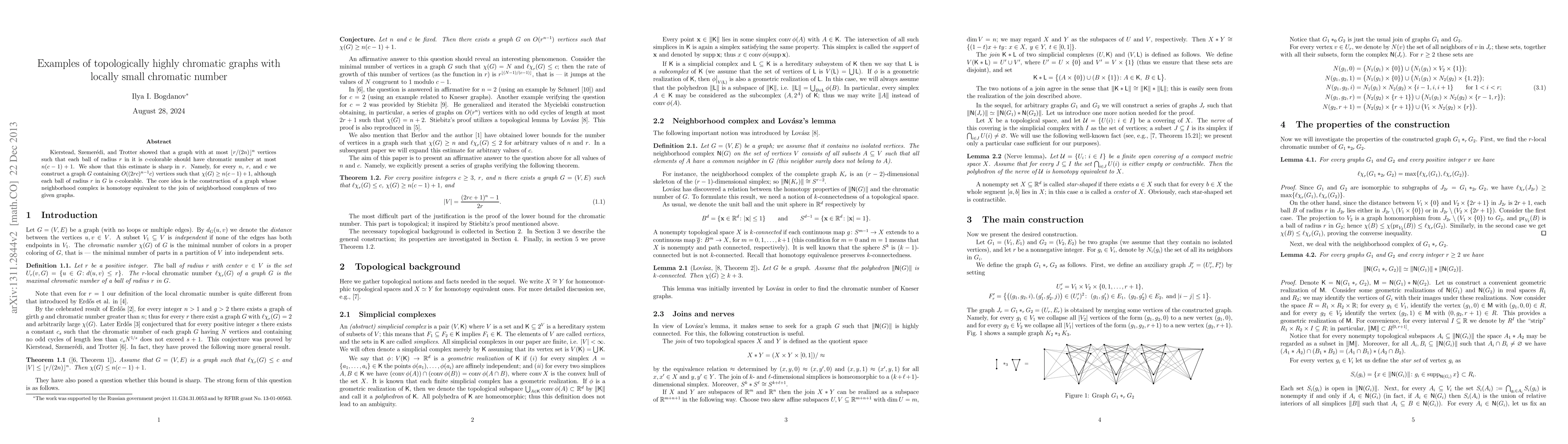 The paper demonstrates that Kierstead, Szemerédi, and Trotter's chromatic number estimate is sharp in 'r'. It constructs a graph 'G' with O((2rc)^(n-1)c) vertices, having a chromatic number of at least n(c-1)+1, yet every ball of radius 'r' in 'G' is c-colorable. This is achieved through a novel method of building a graph whose neighborhood complex is homotopy equivalent to the join of neighborhood complexes of two given graphs.