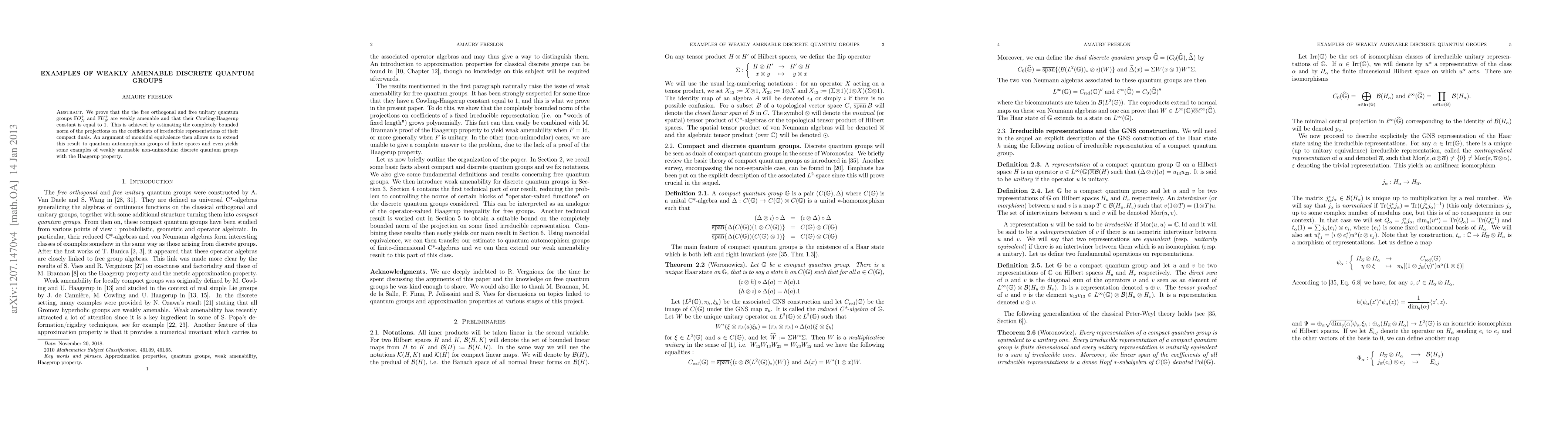 This paper demonstrates that Wang's free orthogonal and free unitary quantum groups are weakly amenable with a Cowling-Haagerup constant of 1. The authors extend this result to quantum automorphism groups of finite spaces, providing examples of weakly amenable non-unimodular discrete quantum groups with the Haagerup property.