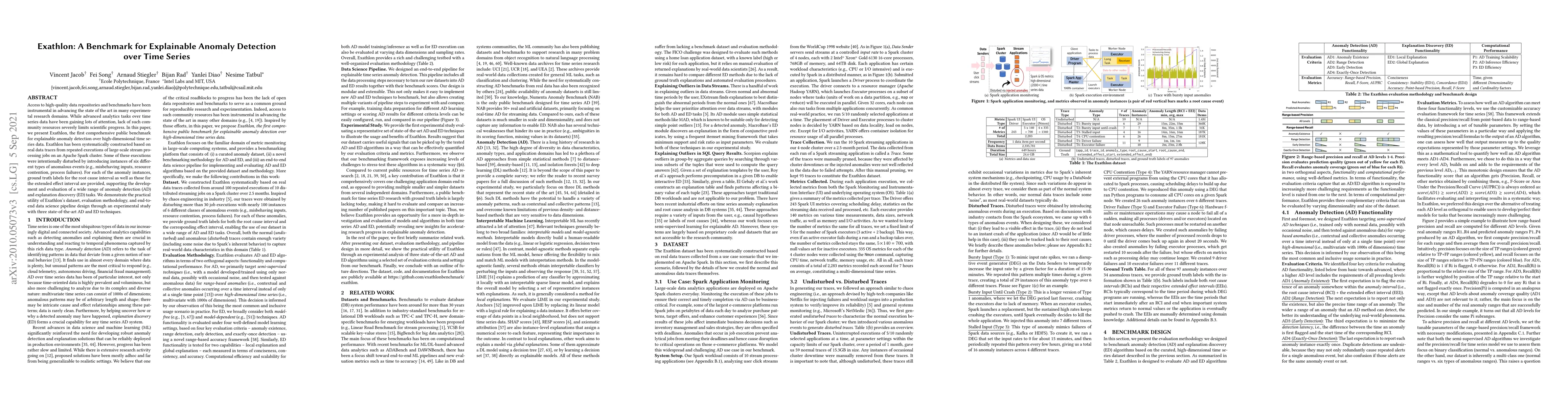 Exathlon is a new benchmark for explainable anomaly detection in time series data, providing a comprehensive dataset with labeled anomalies and supporting the development of state-of-the-art techniques.