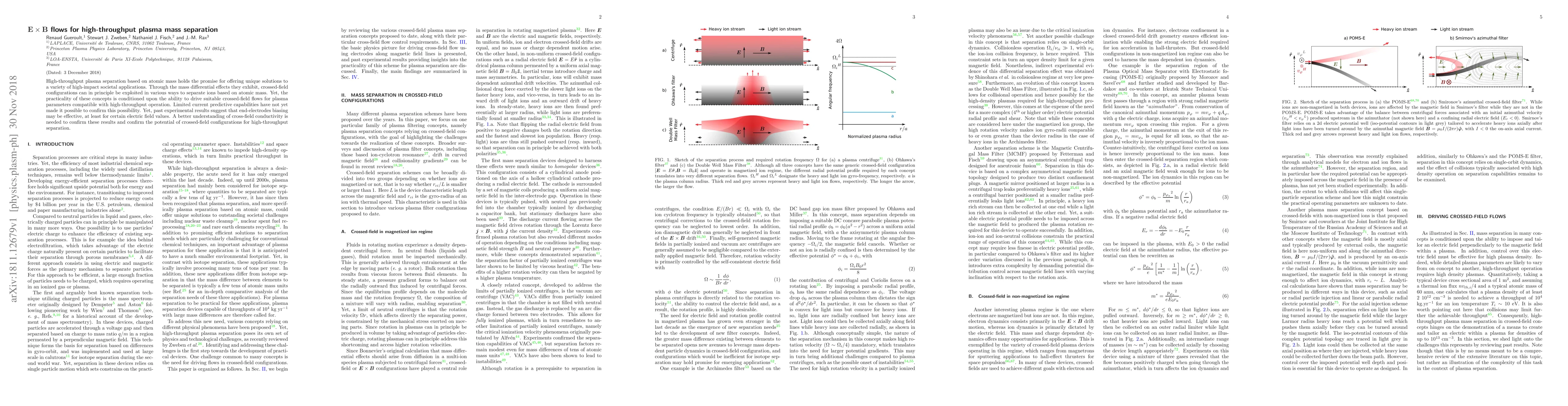 High-throughput plasma separation based on atomic mass holds the promise for offering unique solutions to a variety of high-impact societal applications. Through the mass differential effects they exhibit, crossed-field configurations can in principle be exploited in various ways to separate ions based on atomic mass. Yet, the practicality of these concepts is conditioned upon the ability to drive suitable crossed-field flows for plasma parameters compatible with high-throughput operation. Limited current predictive capabilities have not yet made it possible to confirm this possibility. Yet, past experimental results suggest that end-electrodes biasing may be effective, at least for certain electric field values. A better understanding of cross-field conductivity is needed to confirm these results and confirm the potential of crossed-field configurations for high-throughput separation.