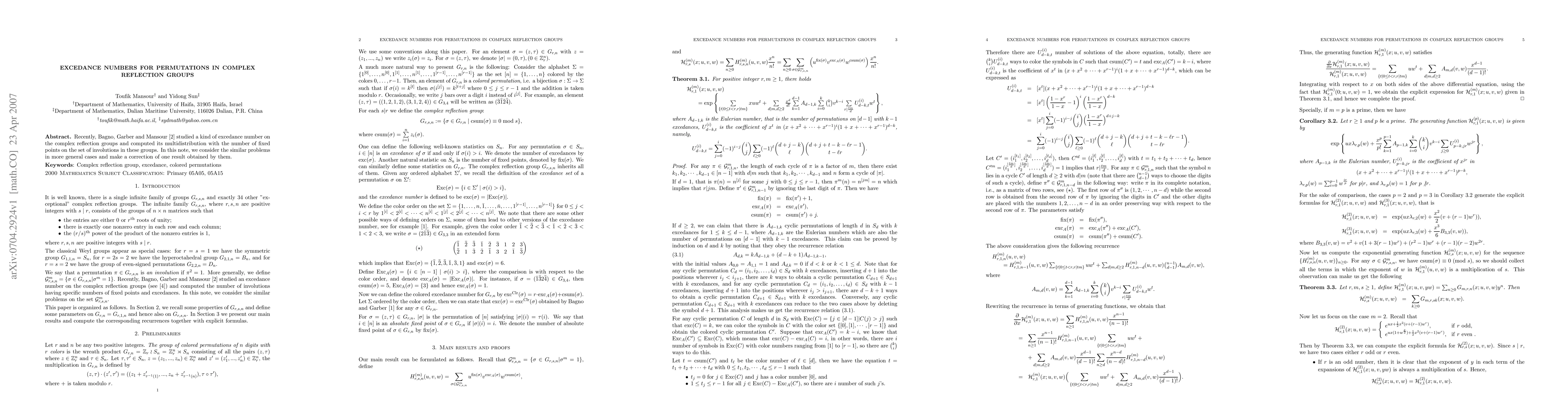 Recently, Bagno, Garber and Mansour studied a kind of excedance number on the complex reflection groups and computed its multidistribution with the number of fixed points on the set of involutions in these groups. In this note, we consider the similar problems in more general cases and make a correction of one result obtained by them.