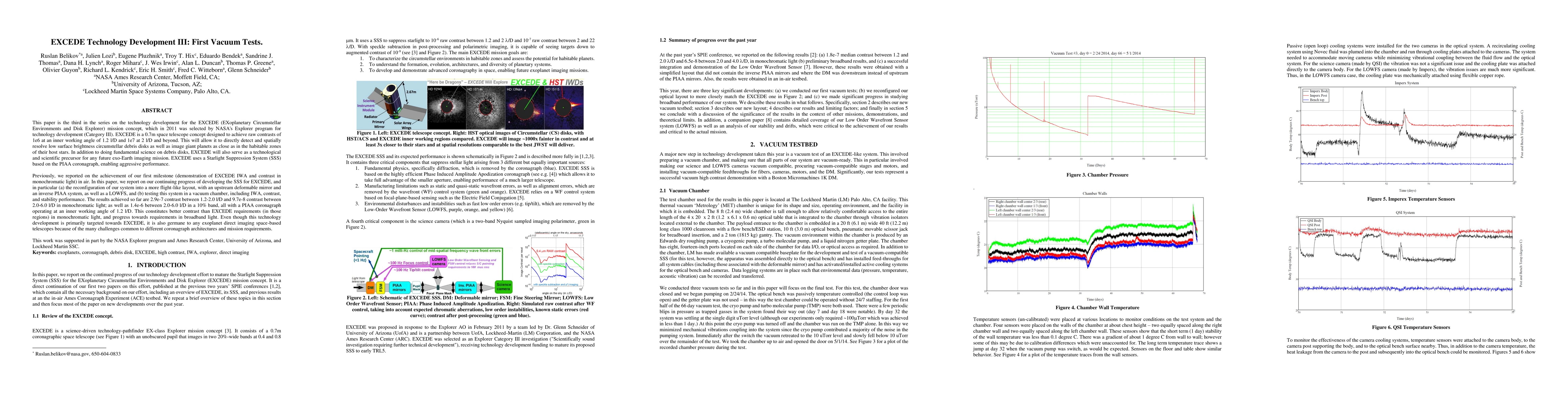 This paper details the third phase of technology development for the EXCEDE space telescope, focusing on the Starlight Suppression System (SSS) and its performance in vacuum tests. The tests achieved better-than-required contrast levels in both monochromatic and broadband light, demonstrating progress towards EXCEDE's goals.