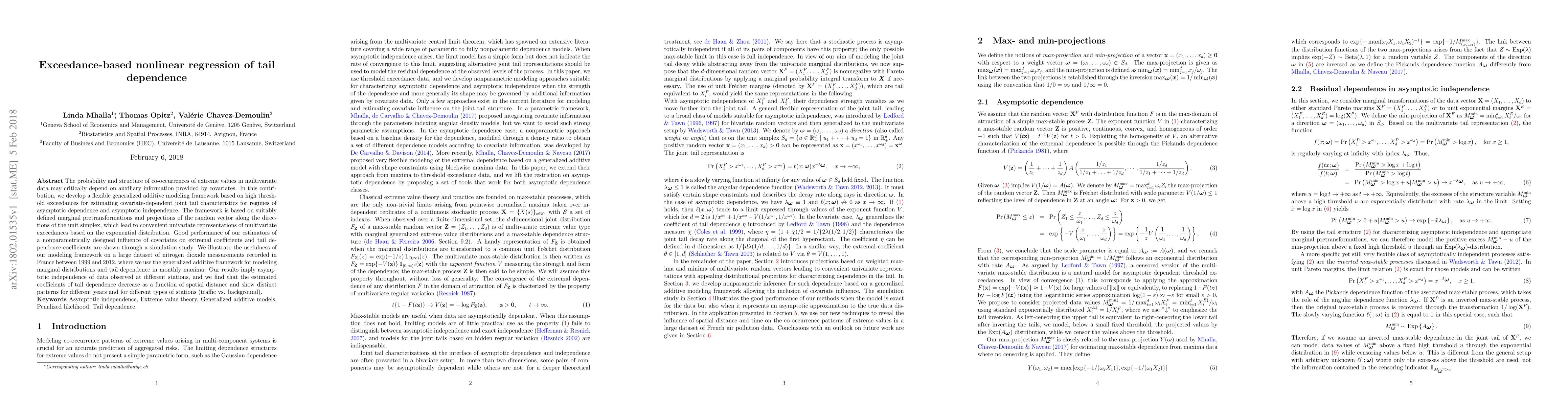 This paper develops a generalized additive modeling framework for estimating covariate-dependent joint tail characteristics in multivariate data, showing good performance through simulations. The framework is applied to nitrogen dioxide data in France, revealing asymptotic independence and varying tail dependence based on spatial distance and station type.