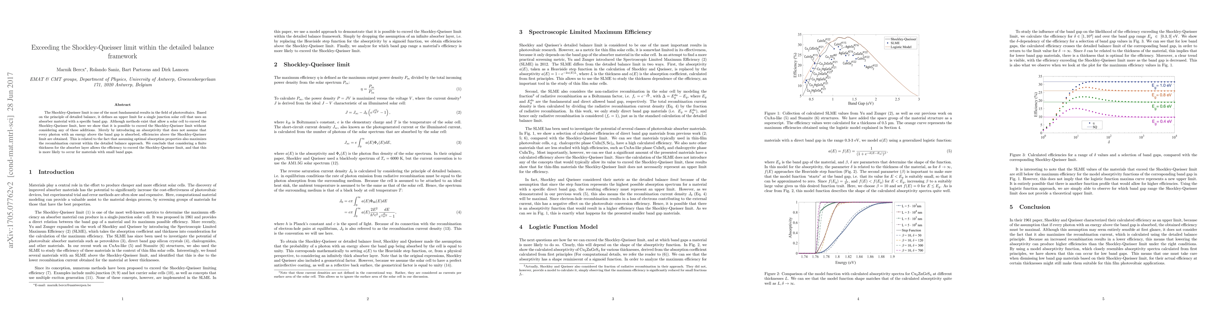This paper explores the possibility of surpassing the Shockley-Queisser limit in solar cells by revising the assumption of absorptivity, demonstrating that efficiencies can exceed the limit without additional methods. It concludes that a finite absorber layer thickness, particularly for materials with small band gaps, allows for this enhanced efficiency.