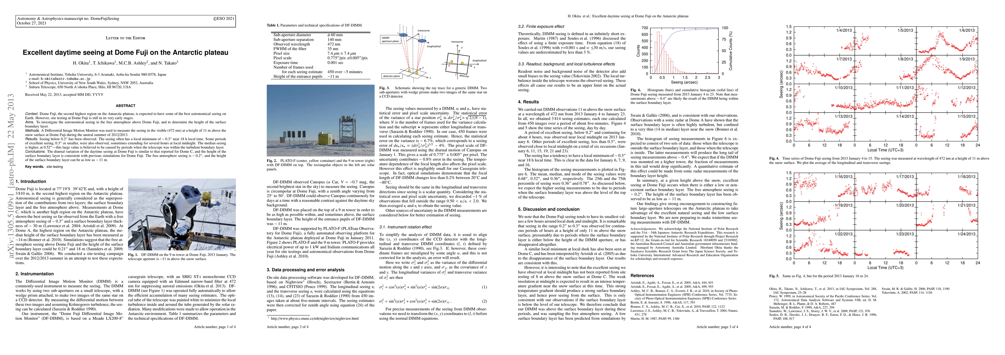 This study investigates the astronomical seeing at Dome Fuji on the Antarctic plateau, finding excellent daytime seeing below 0.2'' with a median value of 0.52''. The surface boundary layer height is estimated to be around 11 m, consistent with previous simulations.