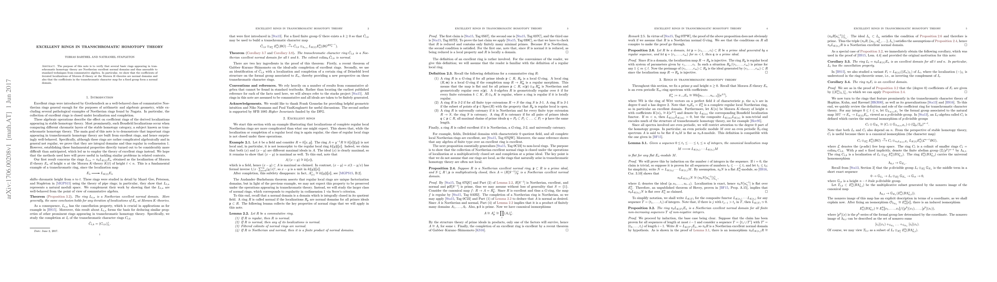 The purpose of this note is to verify that several basic rings appearing in transchromatic homotopy theory are Noetherian excellent normal domains and thus amenable to standard techniques from commutative algebra. In particular, we show that the coefficients of iterated localizations of Morava $E$-theory at the Morava $K$-theories are normal domains and also that the coefficients in the transchromatic character map for a fixed group form a normal domain.