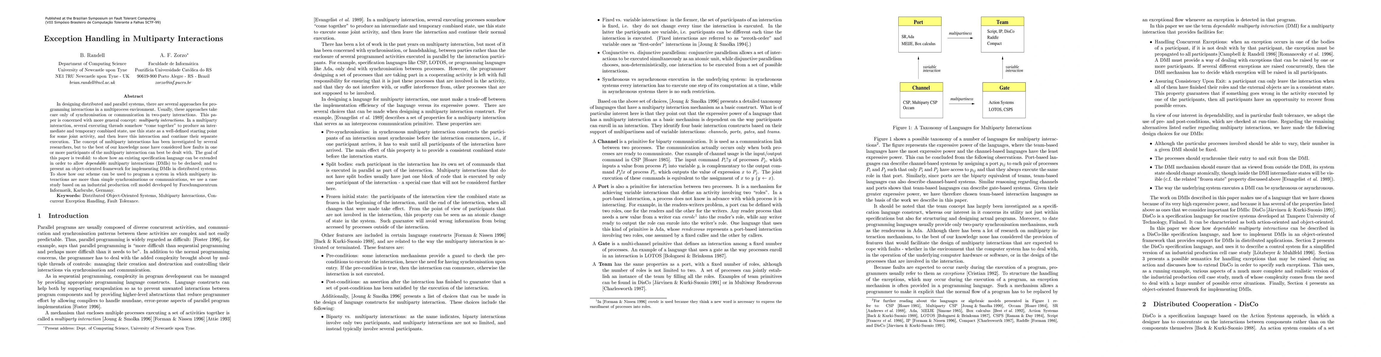 This paper extends a specification language to support dependable multiparty interactions (DMIs) in distributed systems, addressing fault handling in multiparty interactions. It also presents an object-oriented framework for implementing DMIs and demonstrates its application through a case study of an industrial production cell.