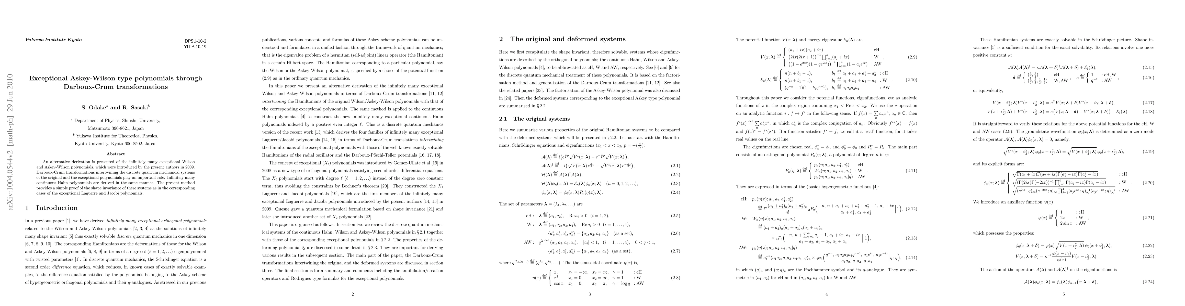 An alternative derivation is presented of the infinitely many exceptional Wilson and Askey-Wilson polynomials, which were introduced by the present authors in 2009. Darboux-Crum transformations intertwining the discrete quantum mechanical systems of the original and the exceptional polynomials play an important role. Infinitely many continuous Hahn polynomials are derived in the same manner. The present method provides a simple proof of the shape invariance of these systems as in the corresponding cases of the exceptional Laguerre and Jacobi polynomials.