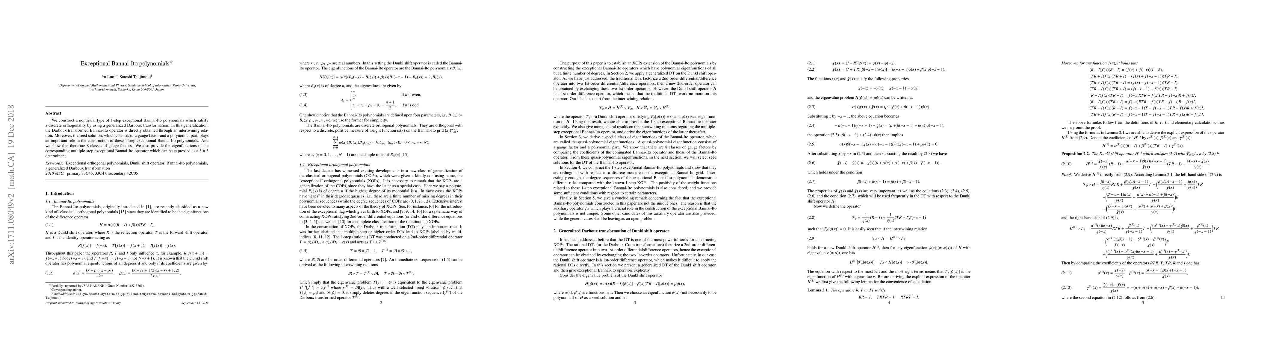 This paper constructs a novel type of 1-step exceptional Bannai-Ito polynomials using a generalized Darboux transformation, revealing discrete orthogonality and identifying 8 classes of gauge factors. The eigenfunctions of the corresponding multiple-step operator are expressed as a 3 x 3 determinant.