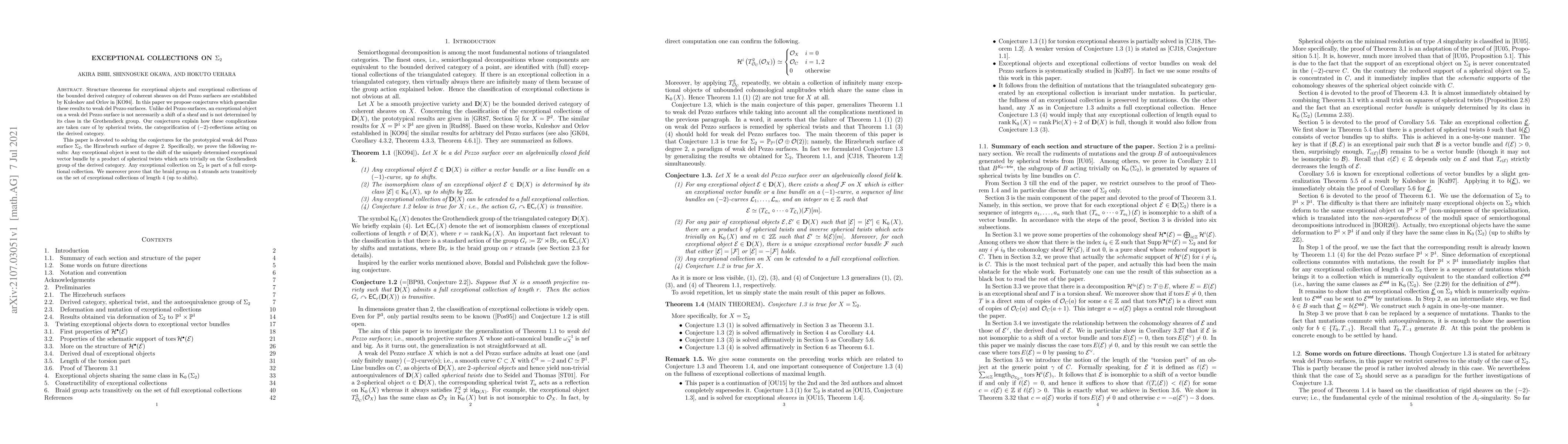 This paper proposes conjectures generalizing exceptional collection results from del Pezzo surfaces to weak del Pezzo surfaces, specifically $\Sigma _{ 2 }$. It proves that any exceptional object on $\Sigma _{ 2 }$ corresponds to a spherical twist of a uniquely determined exceptional vector bundle.