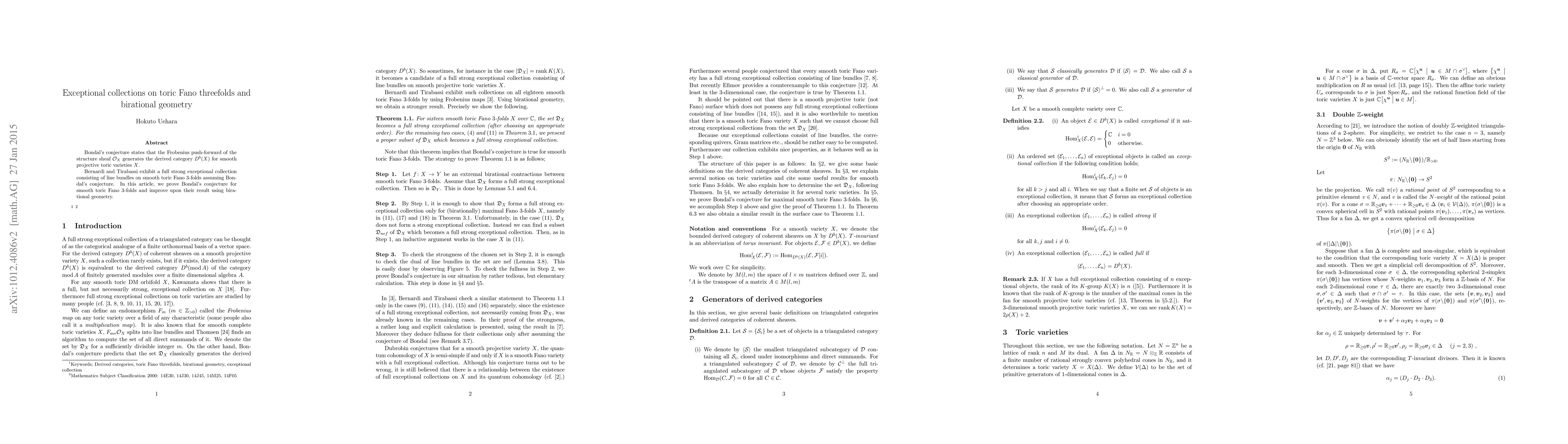 Summary: Bernardi and Tirabassi establish full strong exceptional collections of line bundles on smooth toric Fano threefolds, contingent on Bondal's conjecture. This paper proves Bondal's conjecture for such threefolds and enhances the initial result via birational geometry techniques.