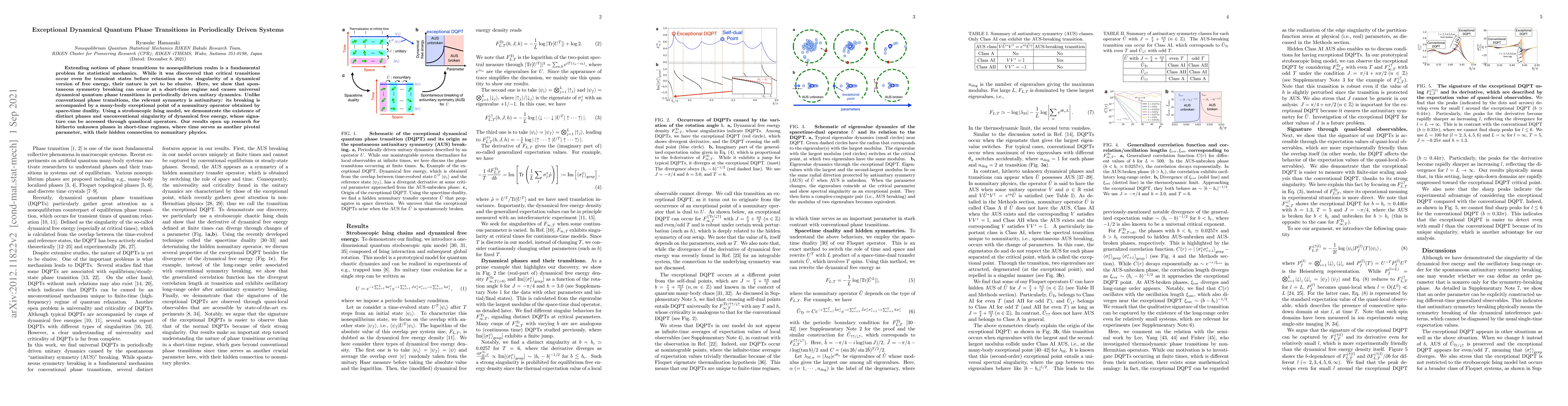Extending notions of phase transitions to nonequilibrium realm is a fundamental problem for statistical mechanics. While it was discovered that critical transitions occur even for transient states before relaxation as the singularity of a dynamical version of free energy, their nature is yet to be elusive. Here, we show that spontaneous symmetry breaking can occur at a short-time regime and causes universal dynamical quantum phase transitions in periodically driven unitary dynamics. Unlike conventional phase transitions, the relevant symmetry is antiunitary: its breaking is accompanied by a many-body exceptional point of a nonunitary operator obtained by space-time duality. Using a stroboscopic Ising model, we demonstrate the existence of distinct phases and unconventional singularity of dynamical free energy, whose signature can be accessed through quasilocal operators. Our results open up research for hitherto unknown phases in short-time regimes, where time serves as another pivotal parameter, with their hidden connection to nonunitary physics.