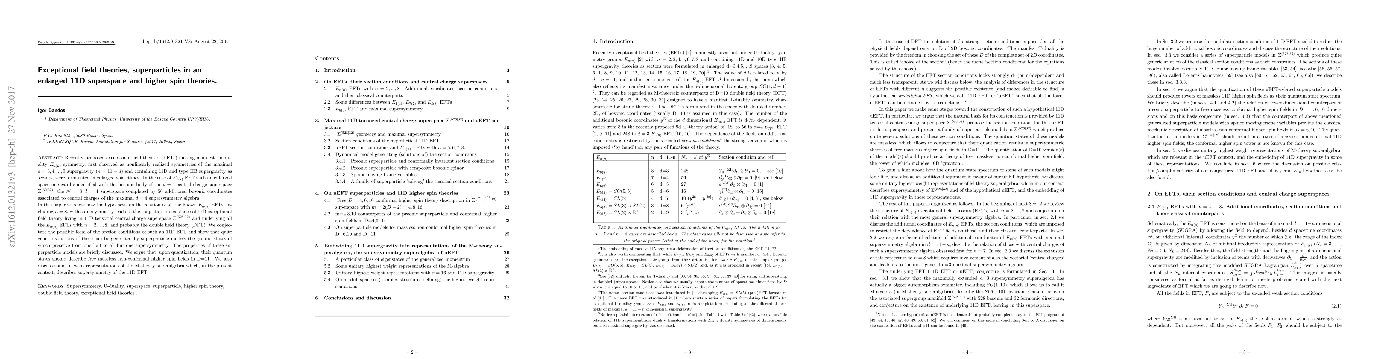 This paper proposes an exceptional field theory (EFT) that unifies various $E_{n(n)}$ EFTs and suggests its existence in an enlarged 11D superspace. It conjectures that this 11D EFT could be described by superparticle models preserving partial supersymmetry and that its quantum states may correspond to free massless higher spin fields in 11 dimensions.