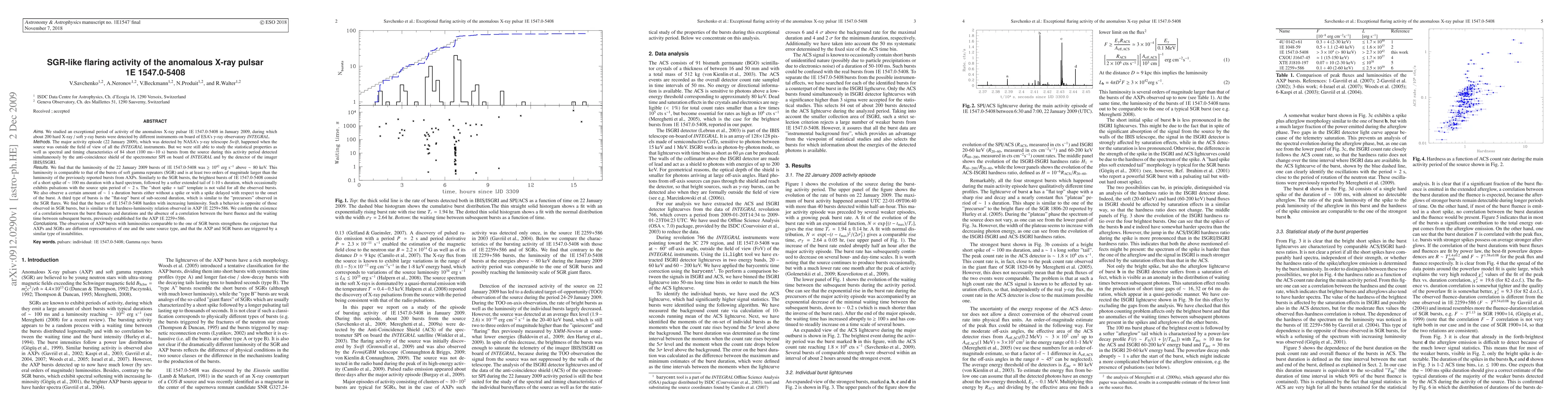 The anomalous X-ray pulsar 1E 1547.0-5408 exhibited an exceptional period of activity in January 2009, with bursts displaying luminosities comparable to those of soft gamma repeaters.