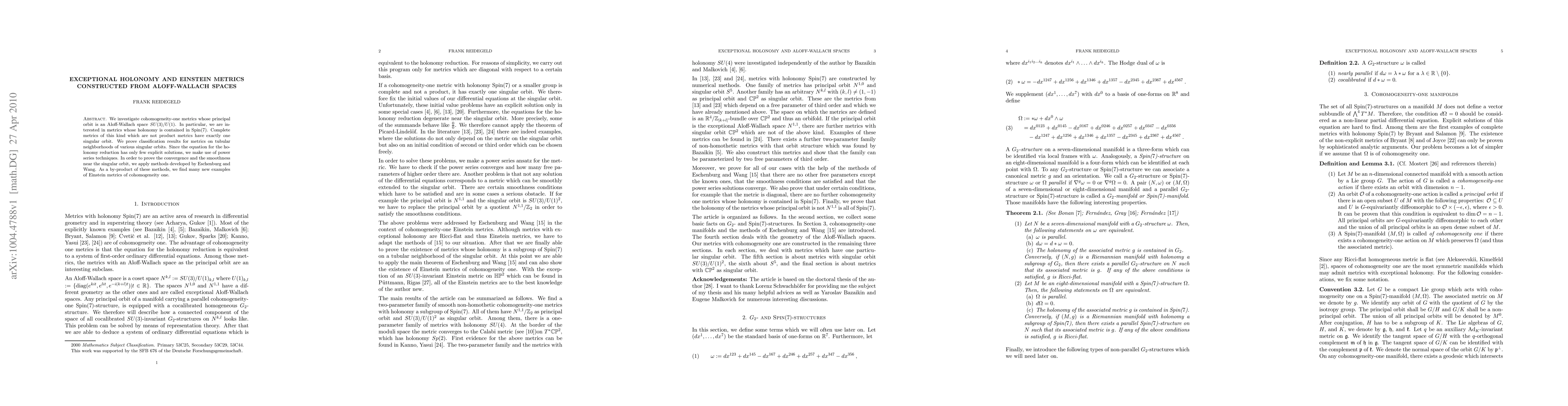 This paper classifies cohomogeneity-one metrics with holonomy contained in Spin(7) on tubular neighborhoods of singular orbits in Aloff-Wallach spaces, employing power series techniques and convergence methods to find new Einstein metrics.