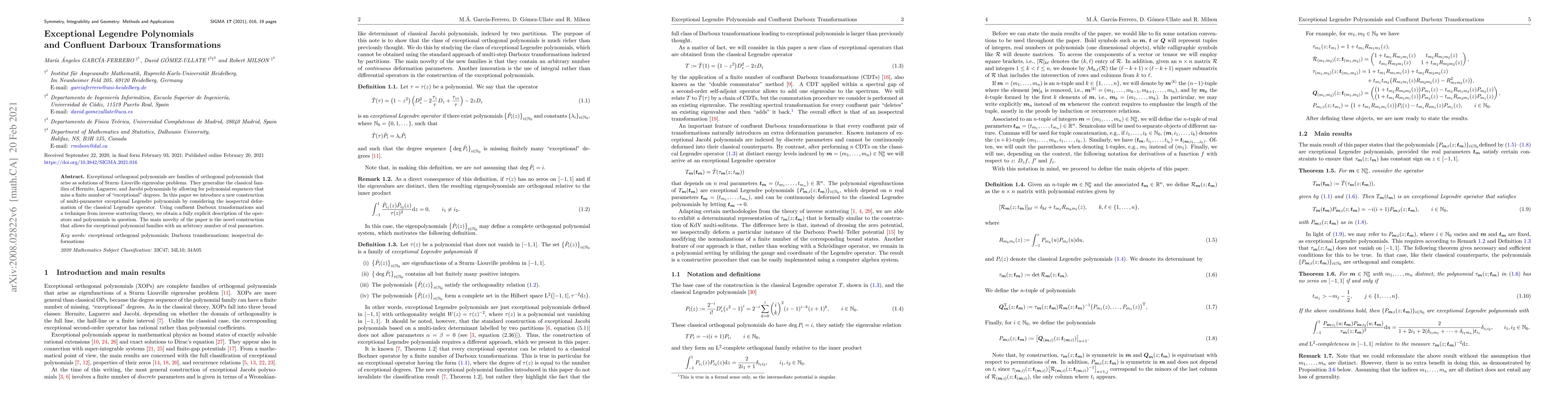Exceptional orthogonal polynomials are families of orthogonal polynomials that arise as solutions of Sturm-Liouville eigenvalue problems. They generalize the classical families of Hermite, Laguerre, and Jacobi polynomials by allowing for polynomial sequences that miss a finite number of "exceptional" degrees. In this paper we introduce a new construction of multi-parameter exceptional Legendre polynomials by considering the isospectral deformation of the classical Legendre operator. Using confluent Darboux transformations and a technique from inverse scattering theory, we obtain a fully explicit description of the operators and polynomials in question. The main novelty of the paper is the novel construction that allows for exceptional polynomial families with an arbitrary number of real parameters.