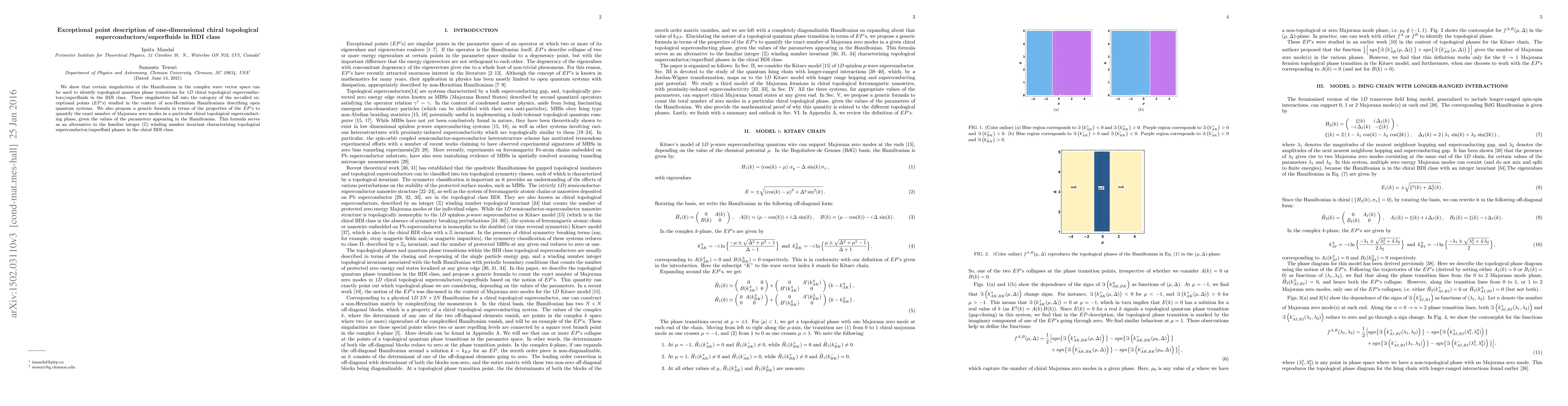 This paper identifies topological quantum phase transitions in 1D chiral topological superconductors/superfluids in the BDI class through exceptional points in the Hamiltonian's singularities. It proposes a formula to quantify Majorana zero modes based on these exceptional points, offering an alternative to the traditional $\mathbb{Z}$ winding number invariant.