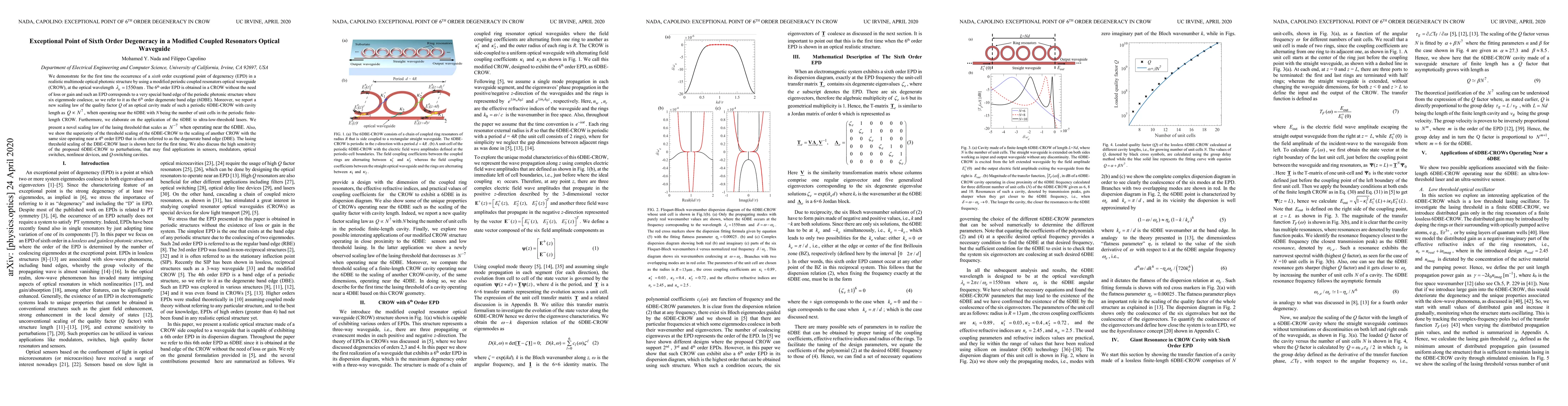 Researchers create a modified optical waveguide that exhibits a sixth order exceptional point of degeneracy, allowing for ultra-low threshold lasers and high sensitivity to perturbations.