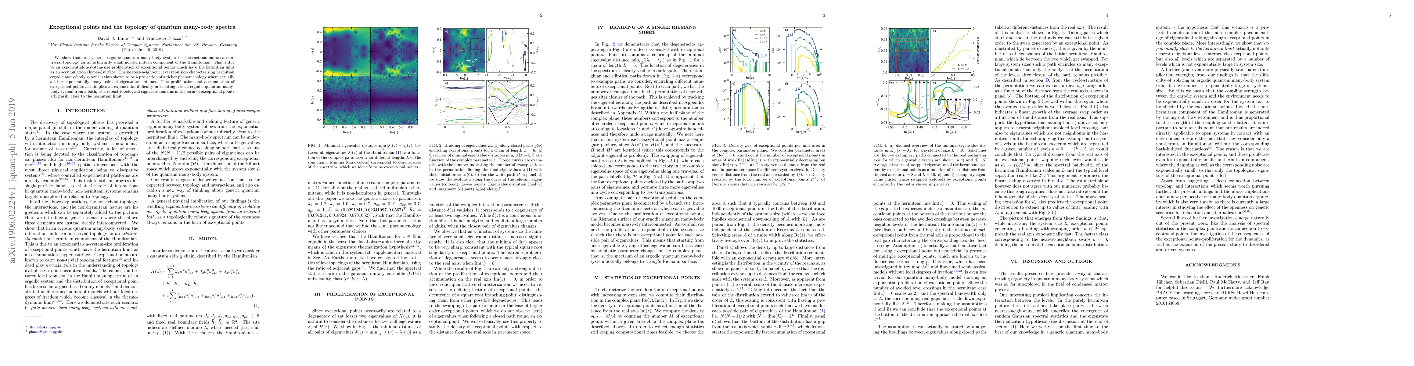We show that in a generic, ergodic quantum many-body system the interactions induce a non-trivial topology for an arbitrarily small non-hermitean component of the Hamiltonian. This is due to an exponential-in-system-size proliferation of exceptional points which have the hermitian limit as an accumulation (hyper-)surface. The nearest-neighbour level repulsion characterizing hermitian ergodic many-body sytems is thus shown to be a projection of a richer phenomenology where actually all the exponentially many pairs of eigenvalues interact. The proliferation and accumulation of exceptional points also implies an exponential difficulty in isolating a local ergodic quantum many-body system from a bath, as a robust topological signature remains in the form of exceptional points arbitrarily close to the hermitian limit.