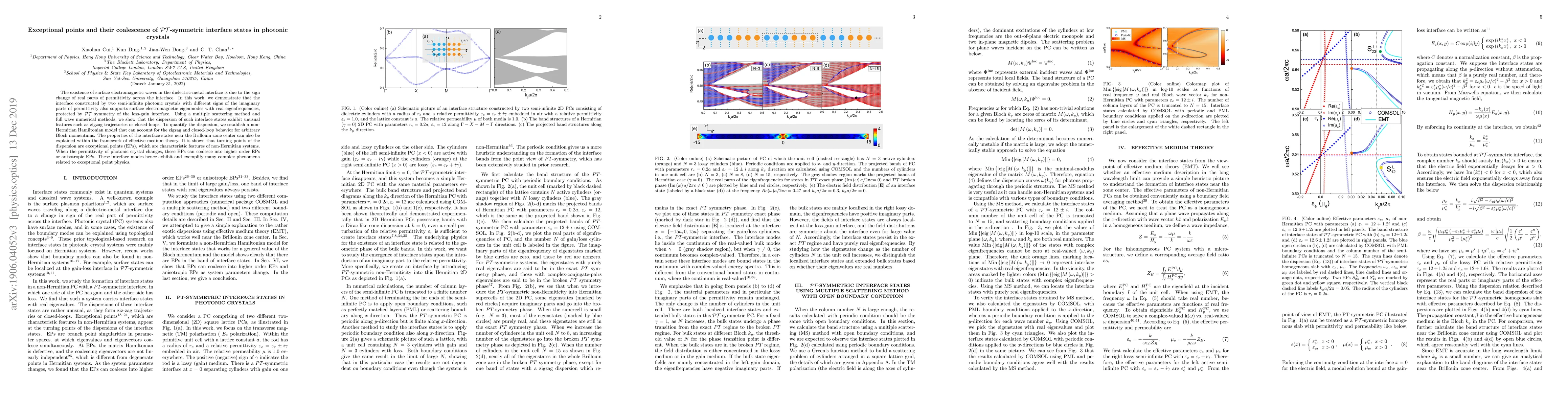 The existence of surface electromagnetic waves in the dielectric-metal interface is due to the sign change of real parts of permittivity across the interface. In this work, we demonstrate that the interface constructed by two semi-infinite photonic crystals with different signs of the imaginary parts of permittivity also supports surface electromagnetic eigenmodes with real eigenfrequencies, protected by $ PT $ symmetry of such loss-gain interface. Using a multiple scattering method and full wave numerical methods, we show that the dispersion of such interface states exhibit unusual features such as zig-zag trajectories or closed-loops. To quantify the dispersion, we establish a non-Hermitian Hamiltonian model that can account for the zig-zag and closed-loop behaviour for arbitrary Bloch momentums. The properties of the interface states near the Brillouin zone center can also be explained within the framework of effective medium theory. It is shown that turning points of the dispersion are exceptional points (EPs), which are characteristic features of non-Hermitian systems. When the permittivity of photonic crystal changes, these EPs can coalesce into higher order EPs or anisotropic EPs. These interface modes hence exhibit and exemplify many complex phenomena related to exceptional point physics.
