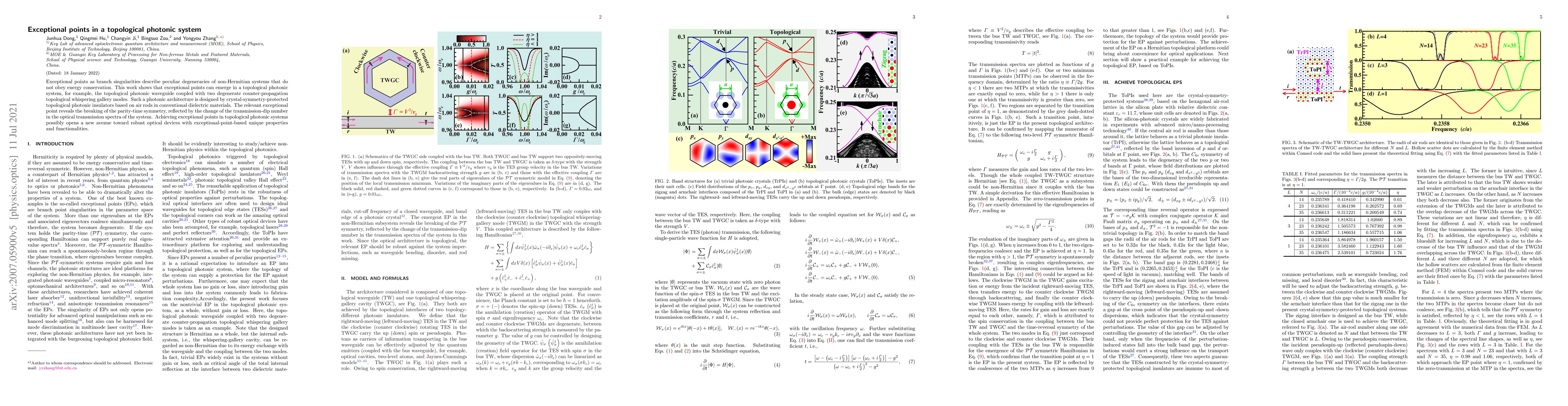 This study demonstrates exceptional points in a topological photonic system, revealing their emergence in a photonic waveguide coupled with counter-propagation modes. The architecture utilizes crystal-symmetry-protected topological insulators, showing a breakdown of parity-time symmetry and potential for advanced optical devices.