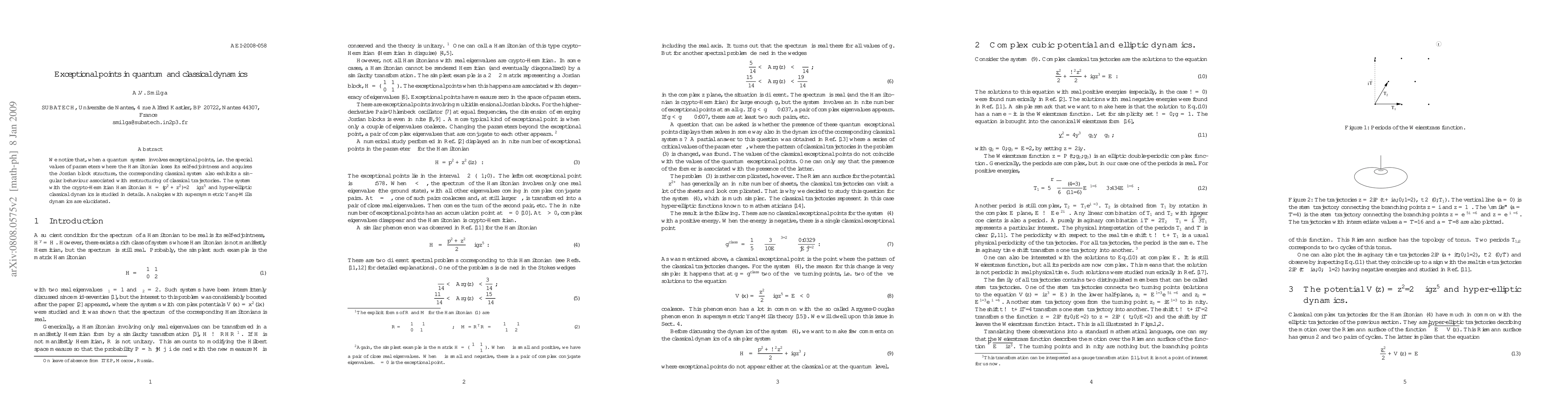 We notice that, when a quantum system involves exceptional points, i.e. the special values of parameters where the Hamiltonian loses its self-adjointness and acquires the Jordan block structure, the corresponding classical system also exhibits a singular behaviour associated with restructuring of classical trajectories. The system with the crypto-Hermitian Hamiltonian H = (p^2+z^2)/2 -igz^5 and hyper-ellictic classical dynamics is studied in details. Analogies with supersymmetric Yang-Mills dynamics are elucidated.