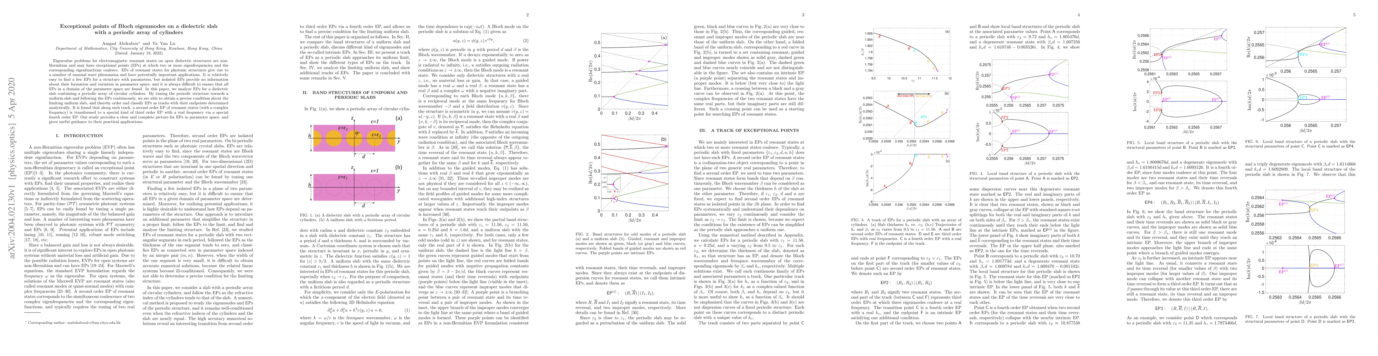 This paper investigates exceptional points (EPs) in a dielectric slab with a periodic array of cylinders, revealing how EPs form tracks and transform in parameter space. The study provides a comprehensive classification of EPs, offering insights for practical applications in photonic structures.