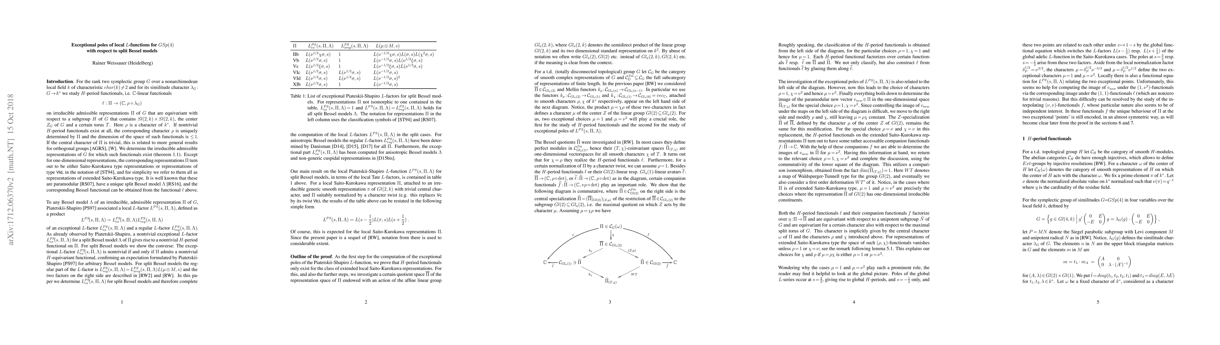 Piateskii-Shapiro defined local $L$-factors $L^{PS}(s,\Pi,\Lambda)$ attached to irreducible admissible representations $\Pi$ of the group $GSp(4)$ over local fields and Bessel models of $\Pi$ attached to Bessel data $\Lambda$. These local $L$-factors decompose into a product $L^{PS}(s,\Pi,\Lambda)= L^{PS}_{ex}(s,\Pi,\Lambda) L^{PS}_{reg}(s,\Pi,\Lambda)$ of an exceptional and a regular $L$-factor. In this paper we compute the exceptional factors $L^{PS}_{ex}(s,\Pi,\Lambda)$ for split Bessel models of $\Pi$.