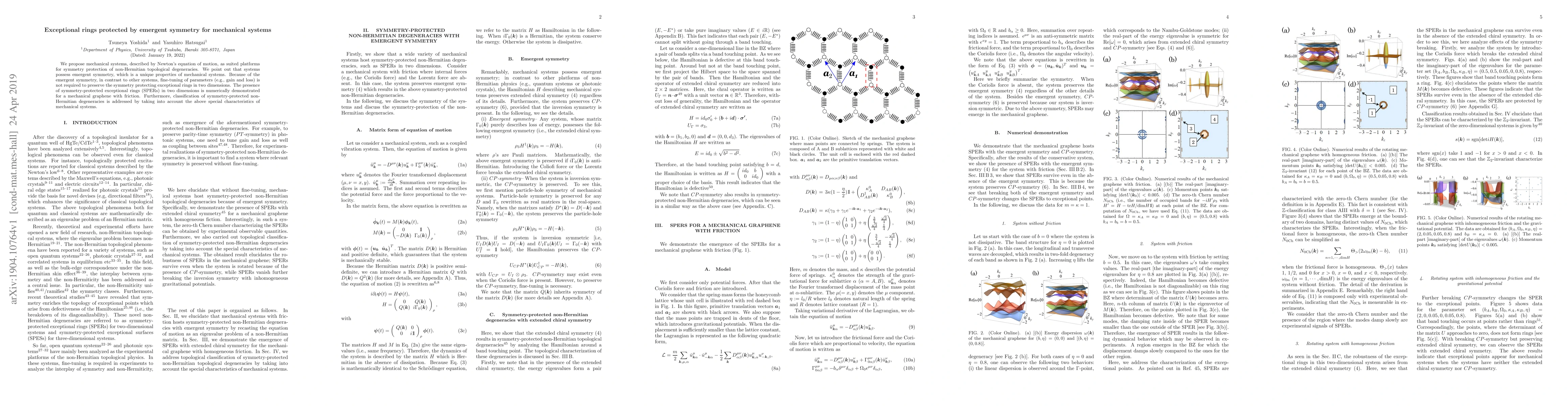 We propose mechanical systems, described by Newton's equation of motion, as suited platforms for symmetry protection of non-Hermitian topological degeneracies. We point out that systems possess emergent symmetry, which is a unique properties of mechanical systems. Because of the emergent symmetry, in contrast to other systems, fine-tuning of parameters (e.g., gain and loss) is not required to preserve the symmetry protecting exceptional rings in two dimensions. The presence of symmetry-protected exceptional rings (SPERs) in two dimensions is numerically demonstrated for a mechanical graphene with friction. Furthermore, classification of symmetry-protected non-Hermitian degeneracies is addressed by taking into account the above special characteristics of mechanical systems.