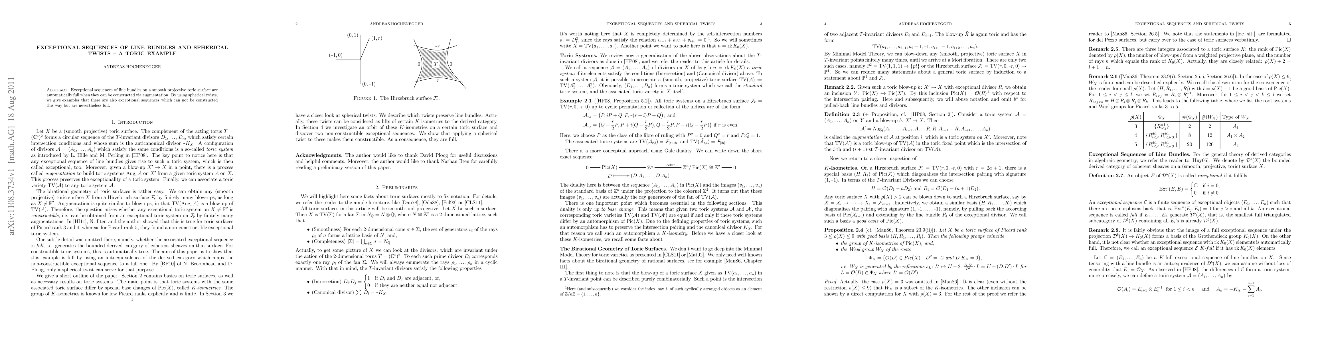 Summary: This paper explores exceptional sequences of line bundles on smooth projective toric surfaces, demonstrating that sequences constructed via augmentation are full. It further provides examples of full exceptional sequences that cannot be formed through augmentation but are still full using spherical twists.