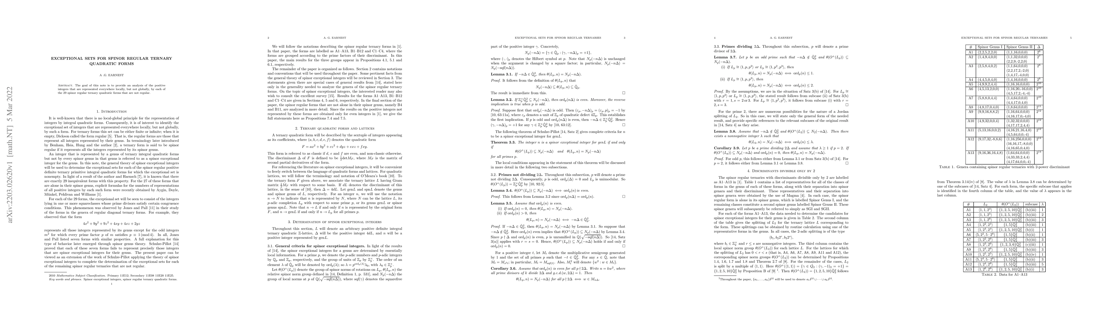 This paper investigates the positive integers represented locally but not globally by each of the 29 spinor regular ternary quadratic forms that are not regular, offering insights into exceptional sets for these forms.