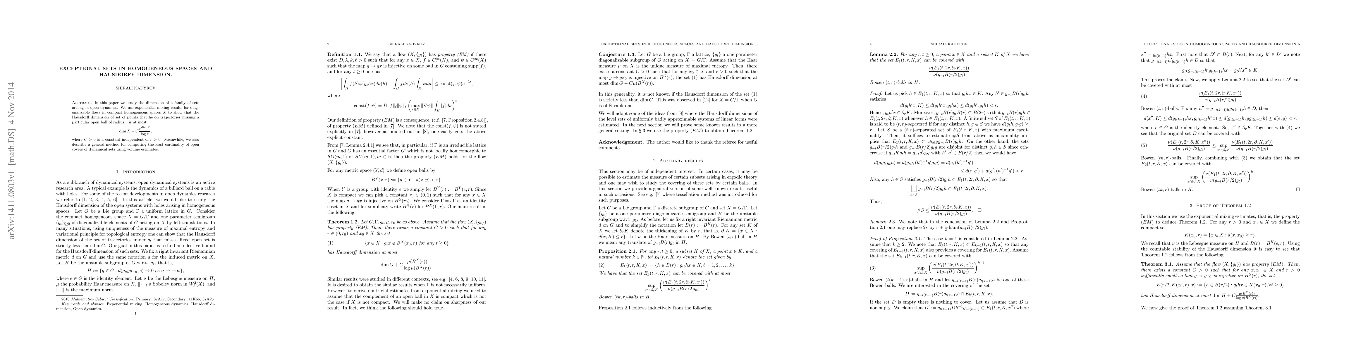 The paper presents a method for bounding the Hausdorff dimension of exceptional sets in homogeneous spaces using exponential mixing properties and volume estimates.