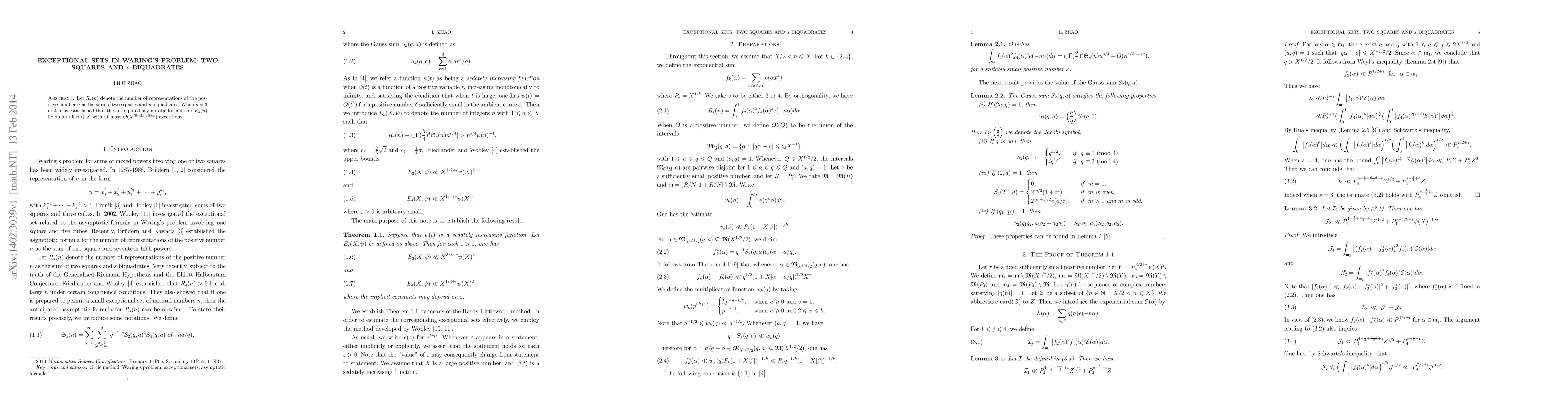 Let $R_s(n)$ denote the number of representations of the positive number $n$ as the sum of two squares and $s$ biquadrates. When $s=3$ or $4$, it is established that the anticipated asymptotic formula for $R_s(n)$ holds for all $n\le X$ with at most $O(X^{(9-2s)/8+\varepsilon})$ exceptions.