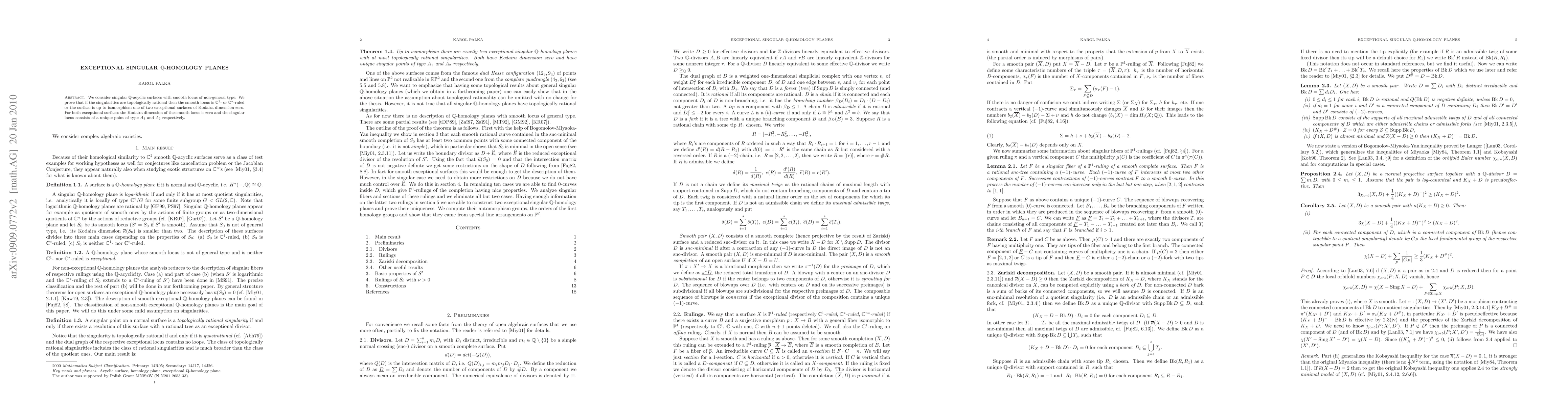 We consider singular Q-acyclic surfaces with smooth locus of non-general type. We prove that if the singularities are topologically rational then the smooth locus is C^1- or C*-ruled or the surface is up to isomorphism one of two exceptional surfaces of Kodaira dimension zero. For both exceptional surfaces the Kodaira dimension of the smooth locus is zero and the singular locus consists of a unique point of type A1 and A2 respectively. These surfaces can be constructed starting from two classical configurations of lines on the projective plane: the dual Hesse configuration and the complete quadrangle.