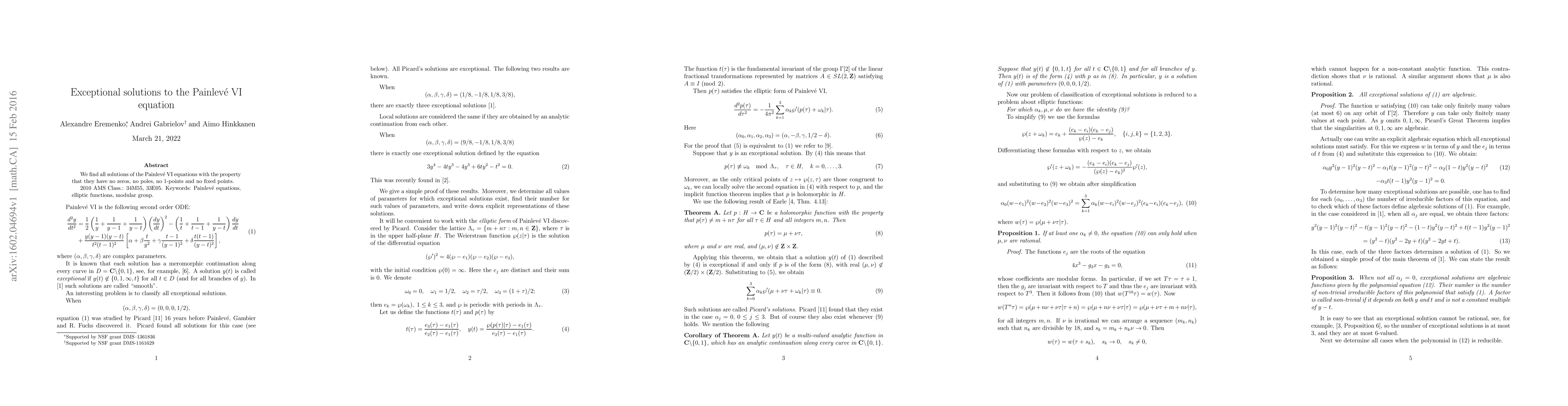 We find all solutions of the Painlev\'e VI equations with the property that they have no zeros, no poles, no 1-points and no fixed points.