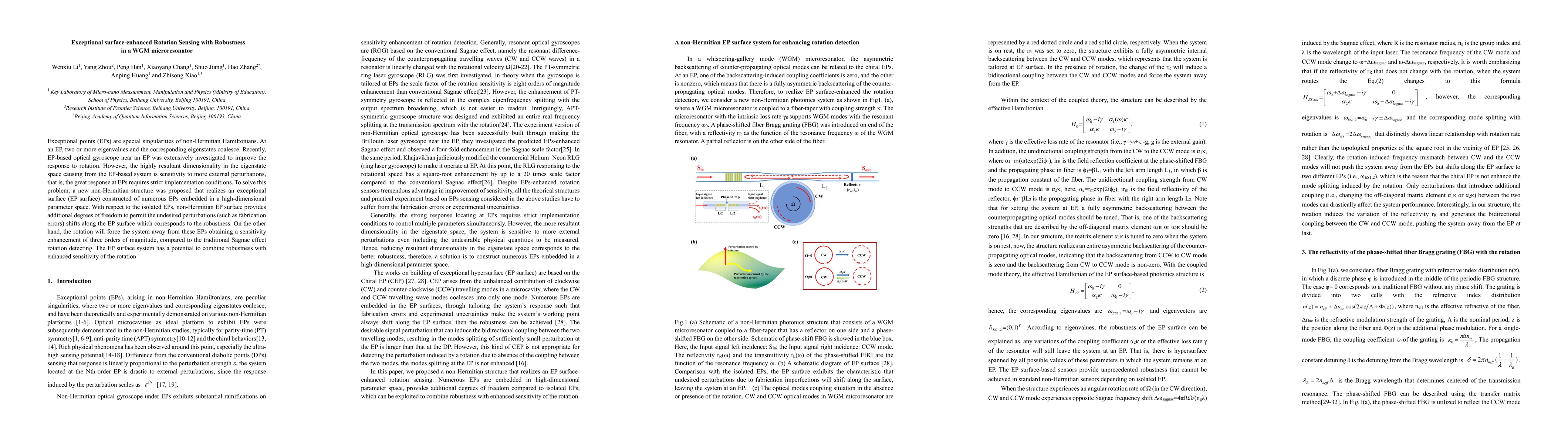 This paper proposes a novel non-Hermitian optical microcavity structure with an exceptional surface (EP surface) to enhance rotation sensing sensitivity by three orders of magnitude. The EP surface provides robustness against perturbations while maintaining high sensitivity to rotation.