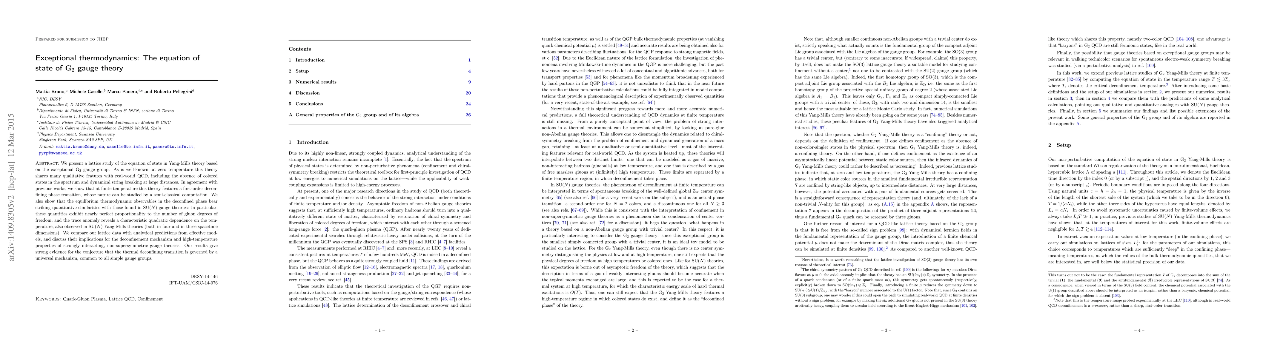 We present a lattice study of the equation of state in Yang-Mills theory based on the exceptional G(2) gauge group. As is well-known, at zero temperature this theory shares many qualitative features with real-world QCD, including the absence of colored states in the spectrum and dynamical string breaking at large distances. In agreement with previous works, we show that at finite temperature this theory features a first-order deconfining phase transition, whose nature can be studied by a semi-classical computation. We also show that the equilibrium thermodynamic observables in the deconfined phase bear striking quantitative similarities with those found in SU(N) gauge theories: in particular, these quantities exhibit nearly perfect proportionality to the number of gluon degrees of freedom, and the trace anomaly reveals a characteristic quadratic dependence on the temperature, also observed in SU(N) Yang-Mills theories (both in four and in three spacetime dimensions). We compare our lattice data with analytical predictions from effective models, and discuss their implications for the deconfinement mechanism and high-temperature properties of strongly interacting, non-supersymmetric gauge theories. Our results give strong evidence for the conjecture that the thermal deconfining transition is governed by a universal mechanism, common to all simple gauge groups.
