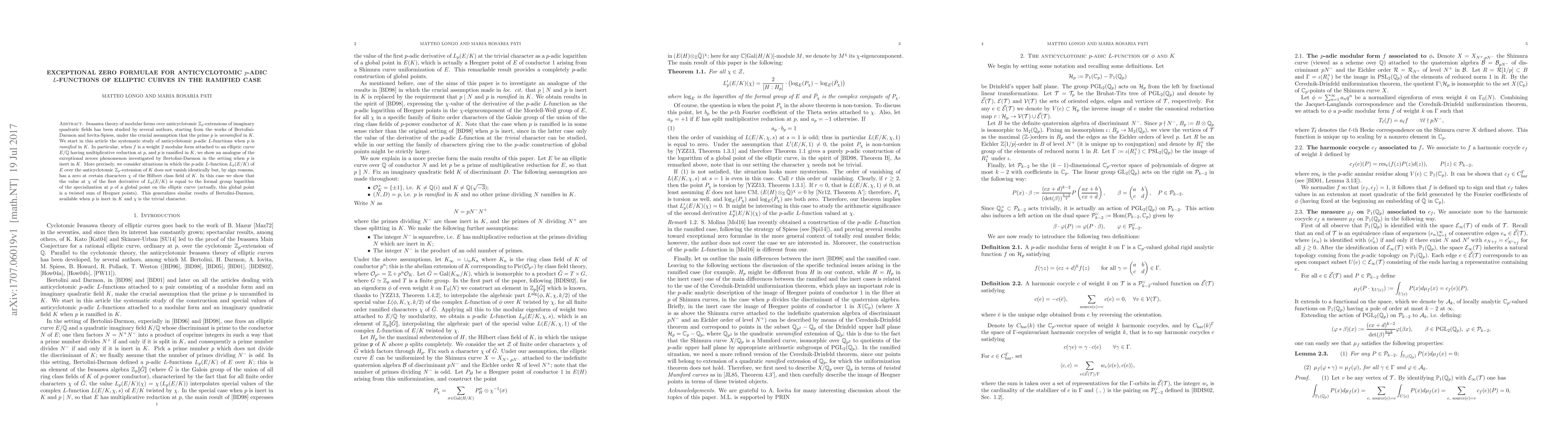 Iwasawa theory of modular forms over anticyclotomic $\mathbb{Z}_p$-extensions of imaginary quadratic fields has been studied by several authors, starting from the works of Bertolini-Darmon and Iovita-Spiess, under the crucial assumption that the prime $p$ is unramified in $K$. We start in this article the systematic study of anticyclotomic $p$-adic $L$-functions when $p$ is ramified in $K$. In particular, when $f$ is a weight $2$ modular form attached to an elliptic curve $E/\mathbb{Q}$ having multiplicative reduction at $p$, and $p$ is ramified in $K$, we show an analogue of the exceptional zeroes phenomenon investigated by Bertolini-Darmon in the setting when $p$ is inert in $K$. More precisely, we consider situations in which the $p$-adic $L$-function $L_p(E/K)$ of $E$ over the anticyclotomic $\mathbb{Z}_p$-extension of $K$ does not vanish identically but, by sign reasons, has a zero at certain characters $\chi$ of the Hilbert class field of $K$. In this case we show that the value at $\chi$ of the first derivative of $L_p(E/K)$ is equal to the formal group logarithm of the specialization at $p$ of a global point on the elliptic curve (actually, this global point is a twisted sum of Heegner points). This generalizes similar results of Bertolini-Darmon, available when $p$ is inert in $K$ and $\chi$ is the trivial character.