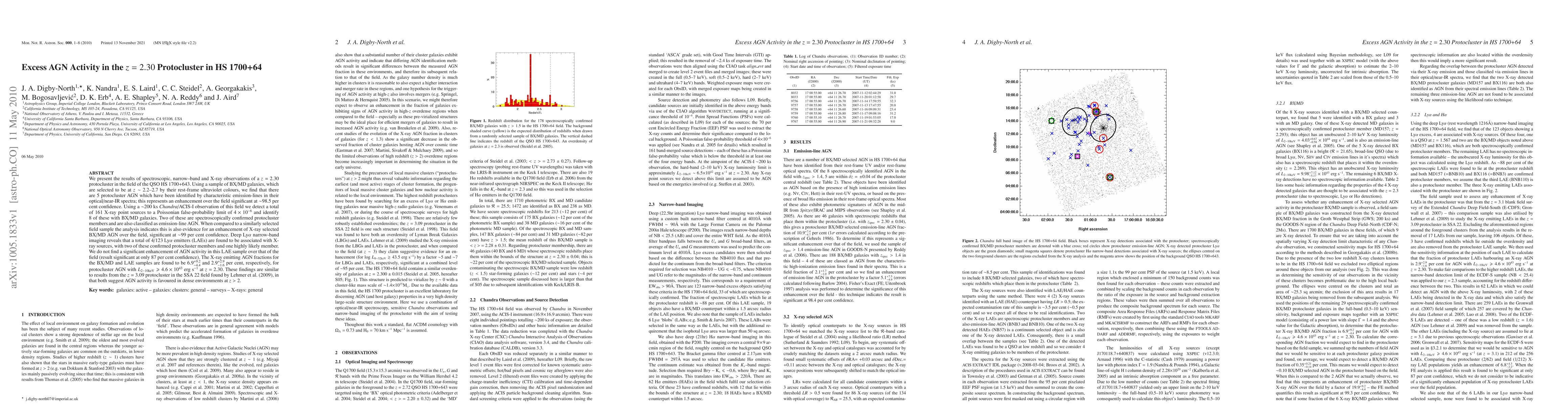 This paper reports on enhanced AGN activity in the z=2.30 protocluster near QSO HS 1700+643, identifying 5 protocluster AGN from BX/MD galaxies and finding significant over-density compared to field samples. X-ray observations reveal an increased fraction of X-ray selected AGN in the protocluster, suggesting a preference for AGN activity in dense environments at high redshifts.