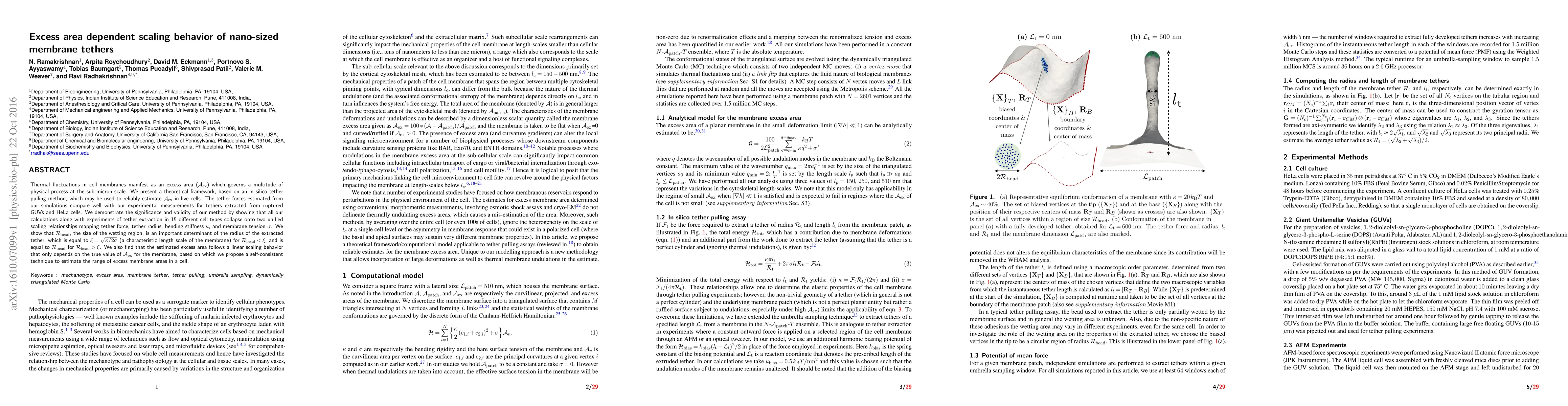 Thermal fluctuations in cell membranes manifest as an excess area (${\cal A}_{\rm ex}$) which governs a multitude of physical process at the sub-micron scale. We present a theoretical framework, based on an in silico tether pulling method, which may be used to reliably estimate ${\cal A}_{\rm ex}$ in live cells. The tether forces estimated from our simulations compare well with our experimental measurements for tethers extracted from ruptured GUVs and HeLa cells. We demonstrate the significance and validity of our method by showing that all our calculations along with experiments of tether extraction in 15 different cell types collapse onto two unified scaling relationships mapping tether force, tether radius, bending stiffness $\kappa$, and membrane tension $\sigma$. We show that $R_{\rm bead}$, the size of the wetting region, is an important determinant of the radius of the extracted tether, which is equal to $\xi=\sqrt{\kappa/2\sigma}$ (a characteristic length scale of the membrane) for $R_{\rm bead}<\xi$, and is equal to $R_{\rm bead}$ for $R_{\rm bead}>\xi$. We also find that the estimated excess area follows a linear scaling behavior that only depends on the true value of ${\cal A}_{\rm ex}$ for the membrane, based on which we propose a self-consistent technique to estimate the range of excess membrane areas in a cell.