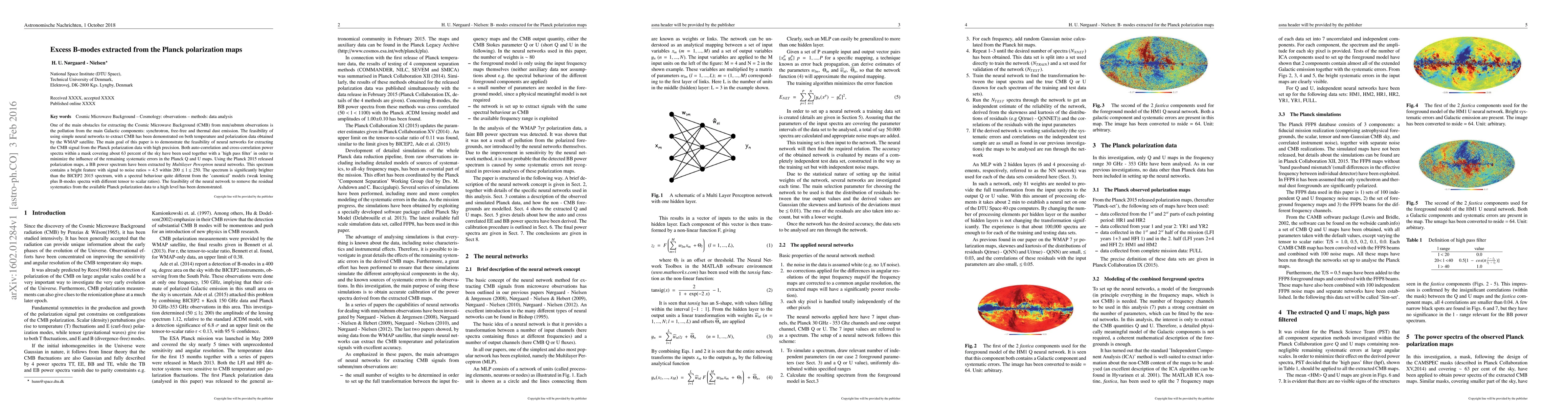 One of the main obstacles for extracting the Cosmic Microwave Background (CMB) from mm/submm observations is the pollution from the main Galactic components: synchrotron, free-free and thermal dust emission. The feasibility of using simple neural networks to extract CMB has been demonstrated on both temperature and polarization data obtained by the WMAP satellite. The main goal of this paper is to demonstrate the feasibility of neural networks for extracting the CMB signal from the Planck polarization data with high precision. Both auto-correlation and cross-correlation power spectra within a mask covering about 63 percent of the sky have been used together with a 'high pass filter' in order to minimize the influence of the remaining systematic errors in the Planck Q and U maps. Using the Planck 2015 released polarization maps, a BB power spectrum have been extracted by \textit{Multilayer Perceptron} neural networks. This spectrum contains a bright feature with signal to noise ratios $\simeq$ 4.5 within 200 $\leq$ l $\leq$ 250. The spectrum is significantly brighter than the BICEP2 2015 spectrum, with a spectral behaviour quite different from the 'canonical' models (weak lensing plus B-modes spectra with different tensor to scalar ratios). The feasibility of the neural network to remove the residual systematics from the available Planck polarization data to a high level has been demonstrated.
