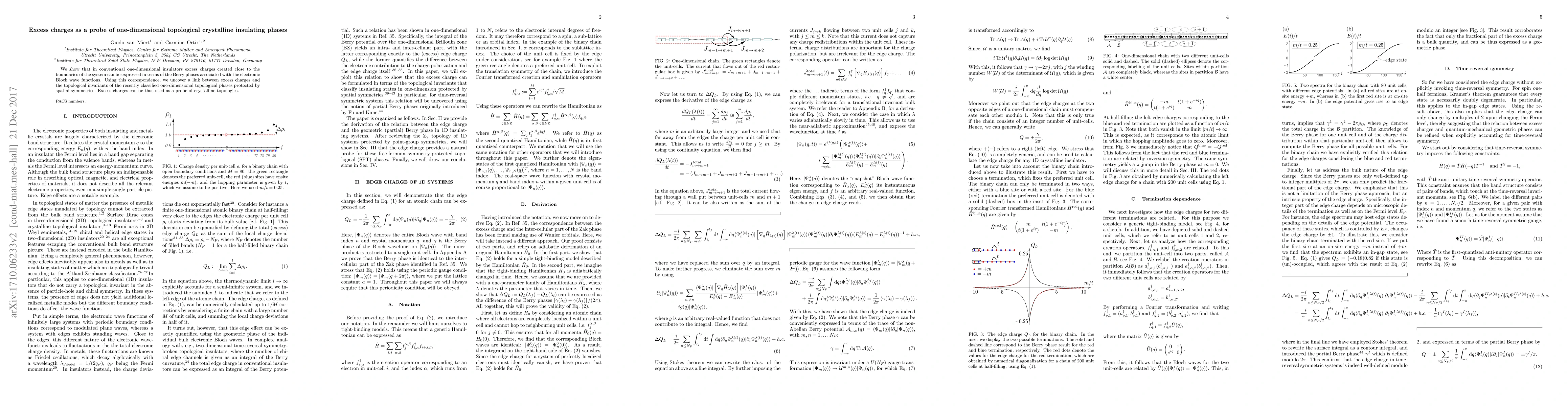 This paper demonstrates that excess charges near the boundaries of one-dimensional insulators relate to the Berry phases of electronic Bloch wave functions, revealing a connection between these charges and the topological invariants of newly classified topological crystalline insulating phases. Excess charges serve as a probe for identifying these crystalline topologies.