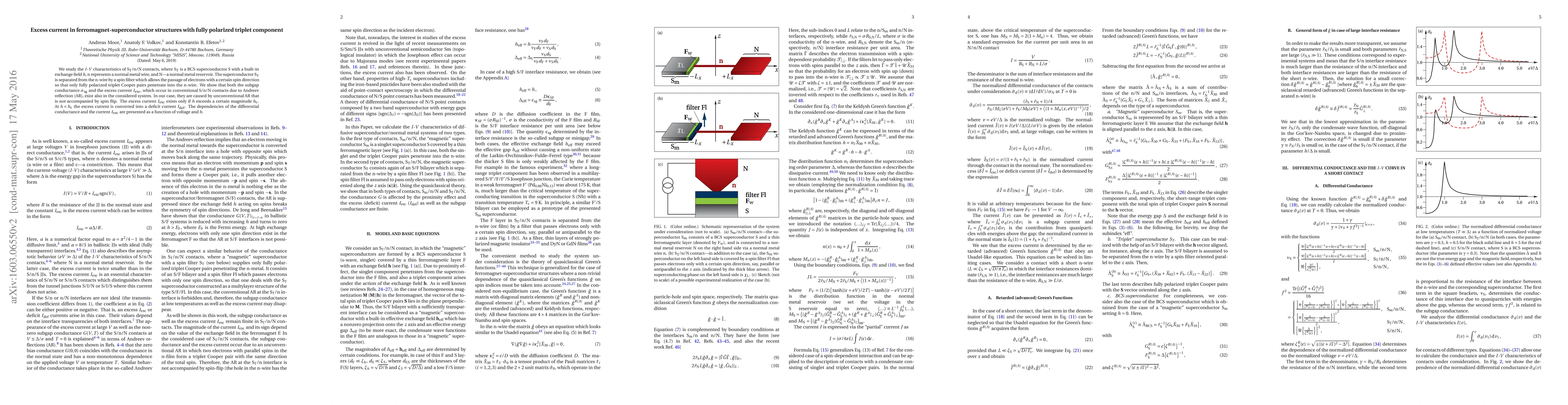 We study the $I$-$V$ characteristics of S$_{\text{T}}$/n/N contacts, where S$_{\text{T}}$ is a BCS superconductor S with a built-in exchange field $h$, n represents a normal metal wire, and N---a normal metal reservoir. The superconductor S$_{\text{T}}$ is separated from the n-wire by a spin filter which allows the passage of electrons with a certain spin direction so that only fully polarized triplet Cooper pairs penetrate into the n-wire. We show that both the subgap conductance $\sigma_{\text{sg}}$ and the excess current $I_{\text{exc}}$, which occur in conventional S/n/N contacts due to Andreev reflection (AR), exist also in the considered system. In our case, they are caused by unconventional AR that is not accompanied by spin flip. The excess current $I_{\text{exc}}$ exists only if $h$ exceeds a certain magnitude $h_{\text{c}}$. At ${h < h_{\text{c}}}$ the excess current is converted into a deficit current $I_\text{{def}}$. The dependencies of the differential conductance and the current $I_{\text{exc}}$ are presented as a function of voltage and $h$.