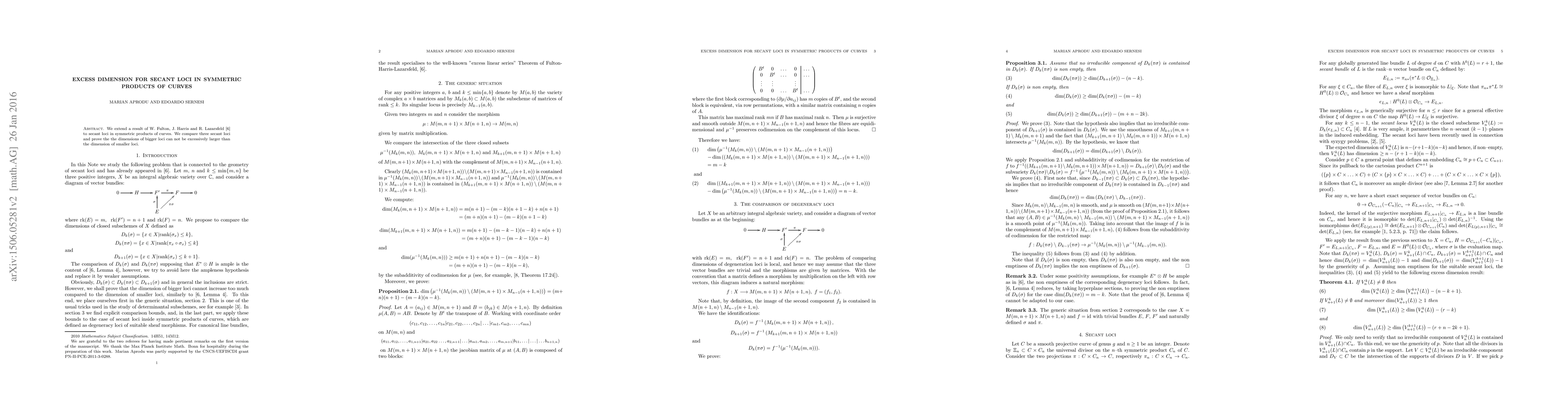 We extend a result of W. Fulton, J. Harris and R. Lazarsfeld to secant loci in symmetric products of curves. We compare three secant loci and prove the the dimensions of bigger loci can not be excessively larger than the dimension of smaller loci.