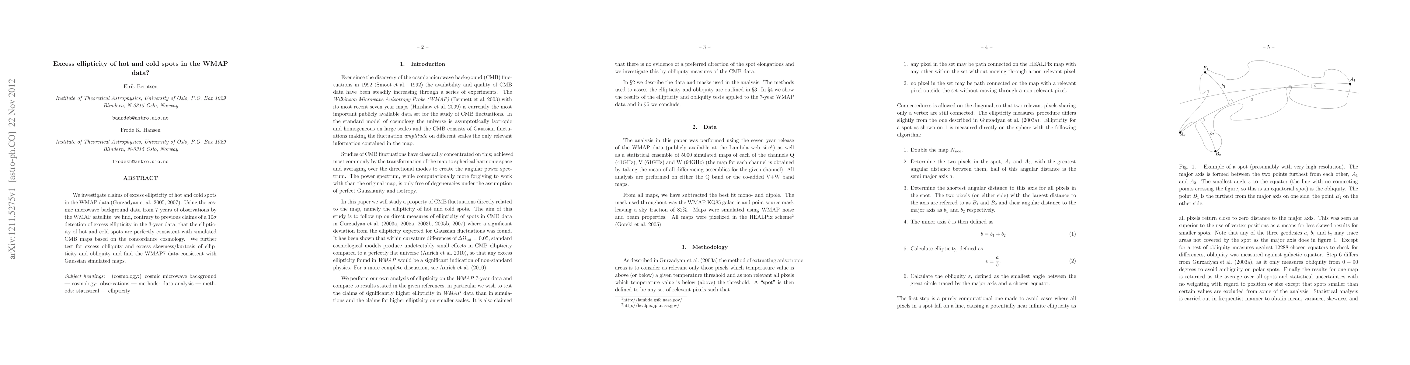 Analyzing 7 years of WMAP data, the study finds no evidence of excess ellipticity or asymmetry in hot and cold spots of the cosmic microwave background, contradicting earlier claims. The results show the observed patterns are consistent with standard cosmological models and Gaussian randomness.