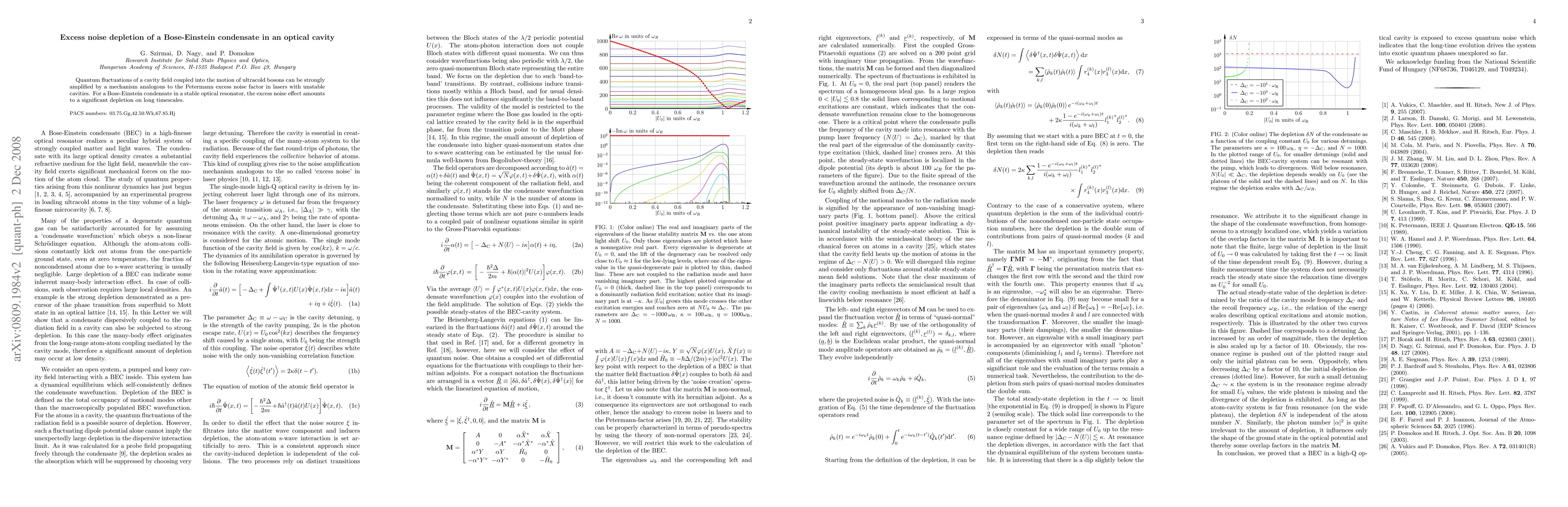 This paper investigates how quantum fluctuations in a coupled cavity field lead to significant depletion of a Bose-Einstein condensate over long periods, analogous to the Petermann excess noise factor in unstable laser cavities. The study highlights the substantial impact of this excess noise on the condensate's stability.